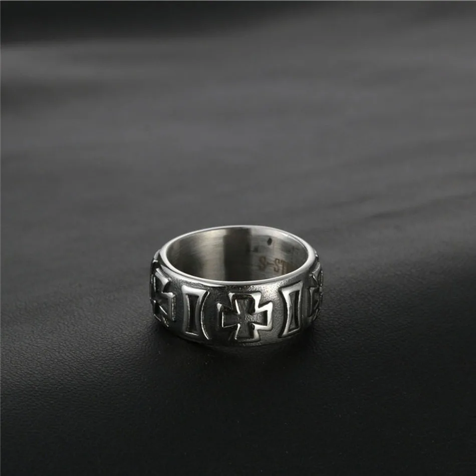 Винтажное титановое черное кольцо в стиле панк-рок, рыцарь, темплар...