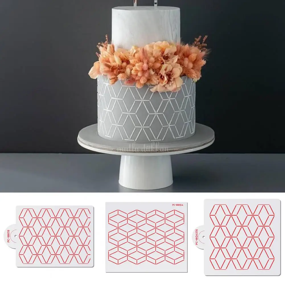 Трафарет для торта с геометрическим ромбовидным узором, товары для ручной росписи, форма для домашнего животного с тиснением и распылением десертов