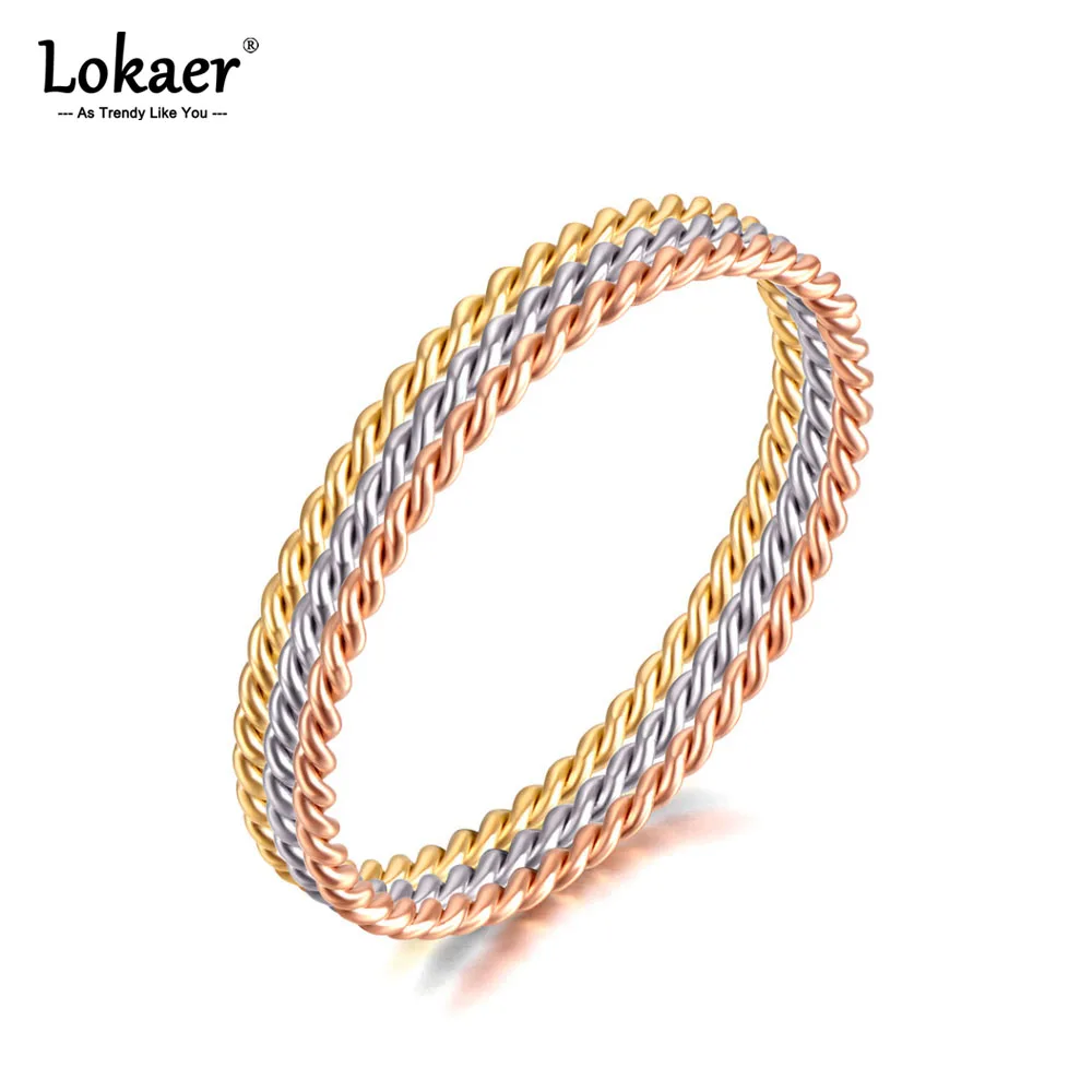 Модные кольца Lokaer из титановой нержавеющей стали, ювелирные изделия, розовое золото, простое кольцо для коктейвечерние для женщин и девушек, R21019