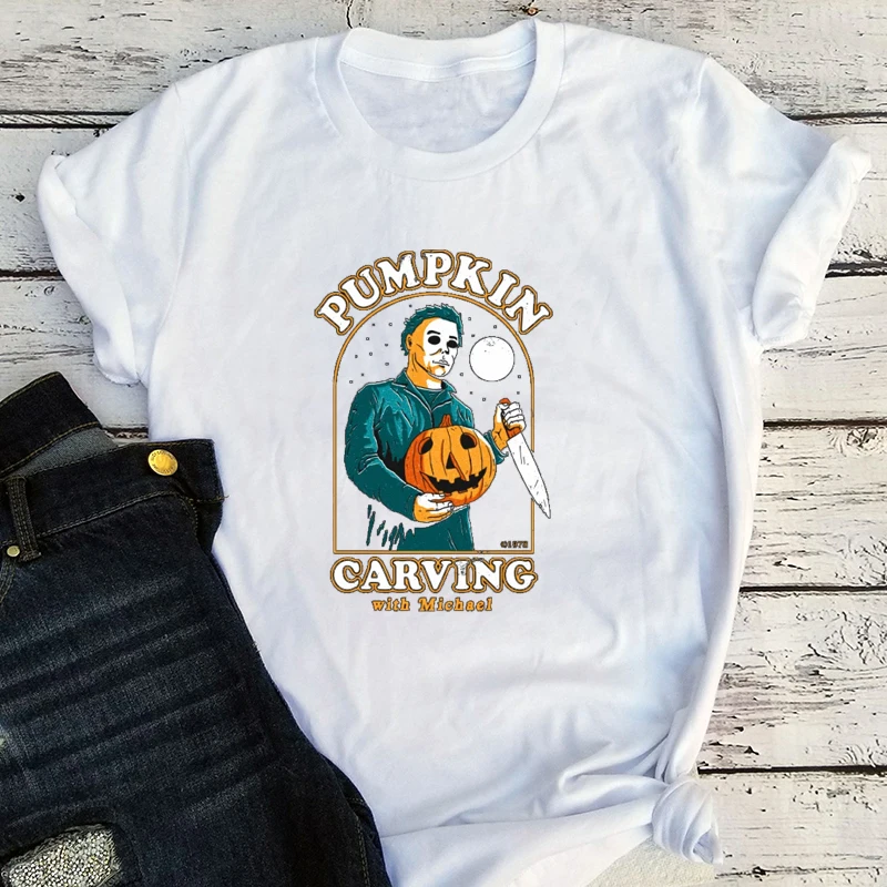 Винтажная женская футболка с изображением черепа, с принтом из фильма ужасов на Хэллоуин, 2021