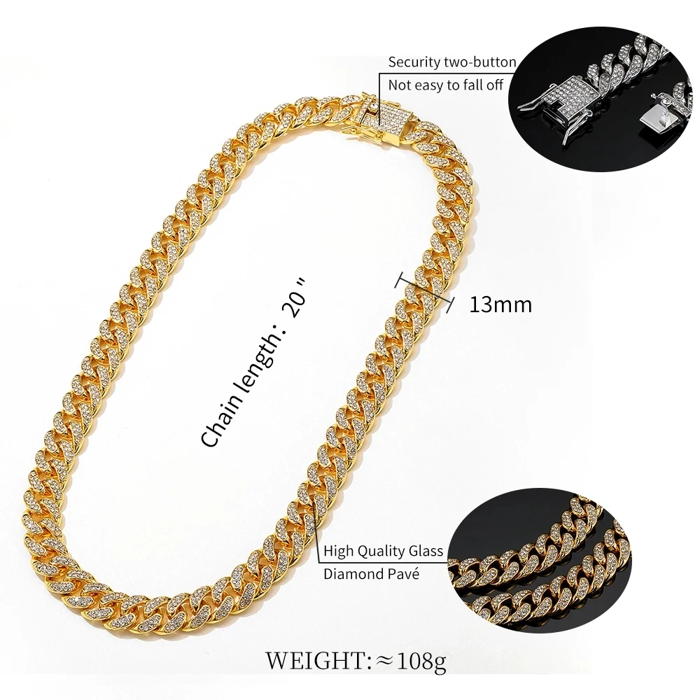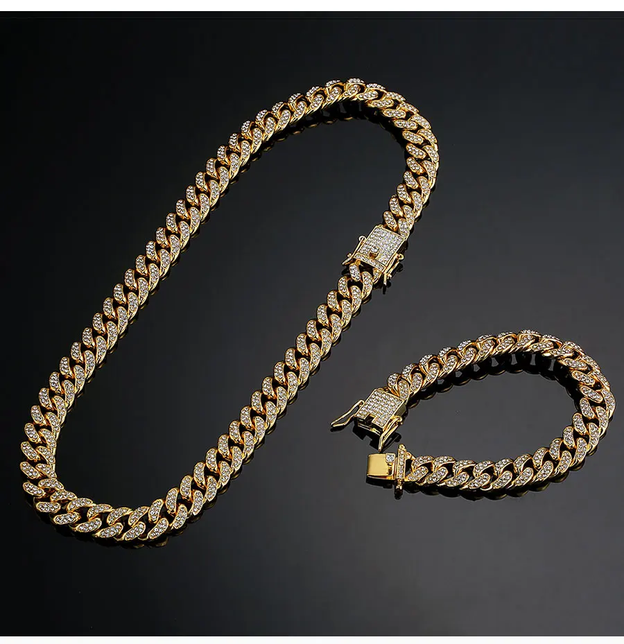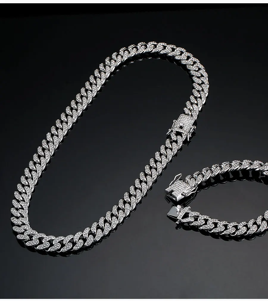 Хип-хоп Ледяной Кристалл Стразы 13 мм панцирная кубинская цепь Майами украшение для мужчин ожерелье браслет аксессуары мужские ювелирные изделия