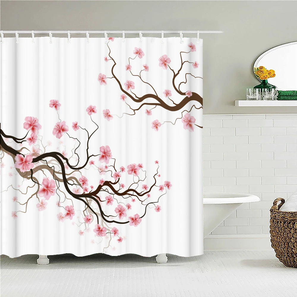 Японский стиль цветок птицы ванная комната занавеска 3D принт вишни цветочный узор занавески для душа водонепроницаемая ткань украшение для дома