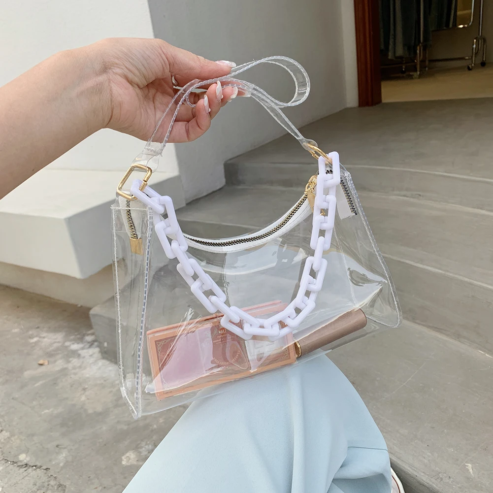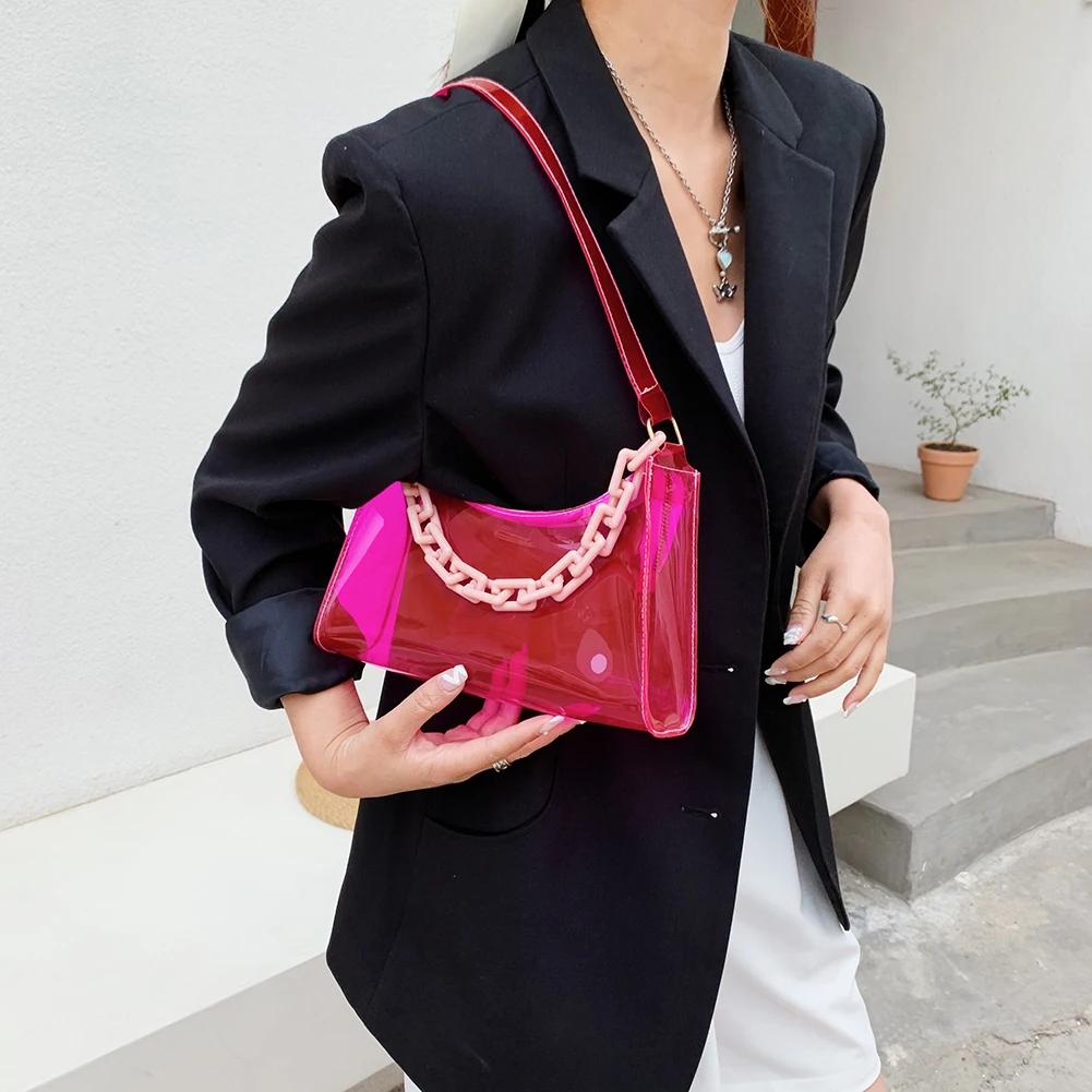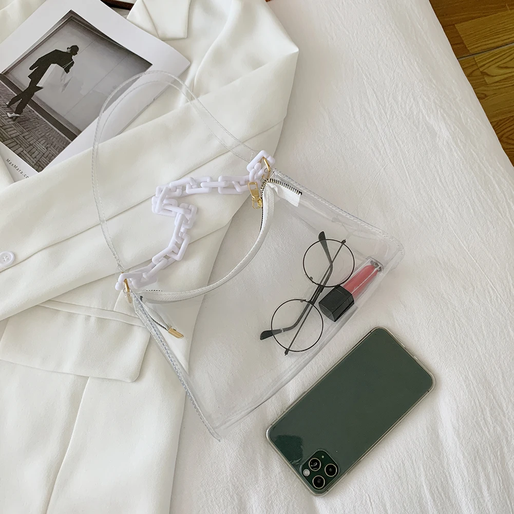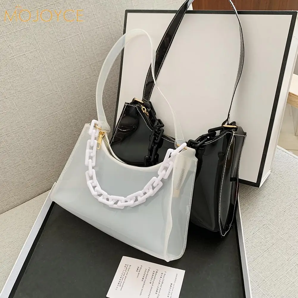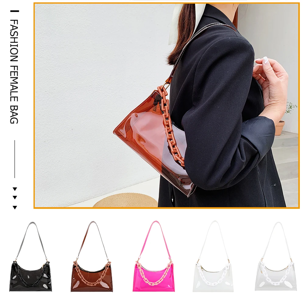 Модная женская тканая прозрачная сумка на плечо из ПВХ и акрила на цепочке, повседневные женские маленькие сумочки, кошелек, сумки для свиданий и путешествий