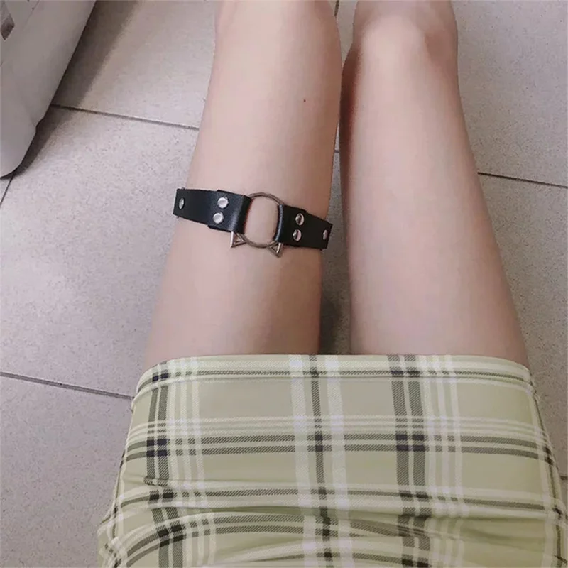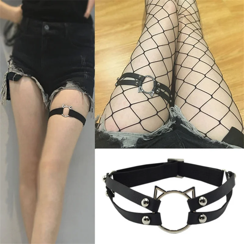Кожаные сексуальные подвязки в стиле панк с головой котенка, подвяз...