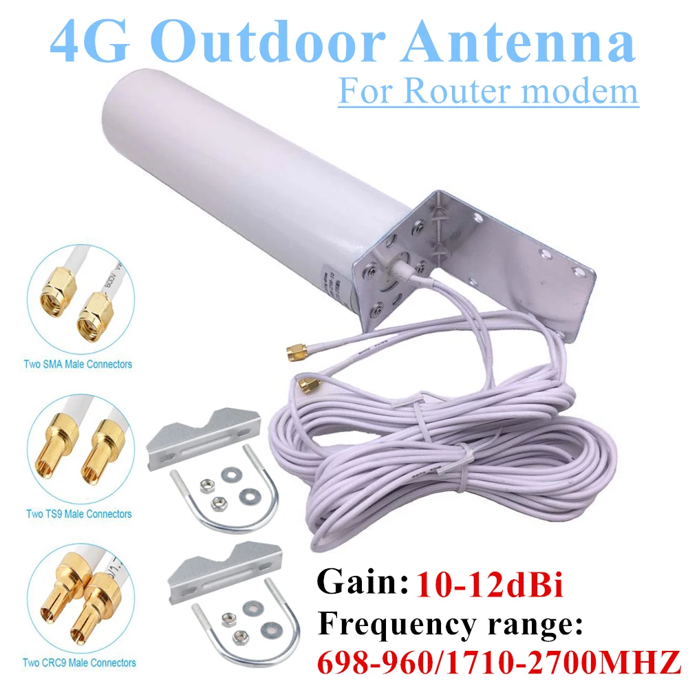 Wi-Fi антенны 4G LTE, наружная цилиндрическая антенна, водонепроницаемая SMA CRC9 TS9 Omni антенна с высоким коэффициентом усиления 698-2700 МГц для модема маршрутизатора Huawei