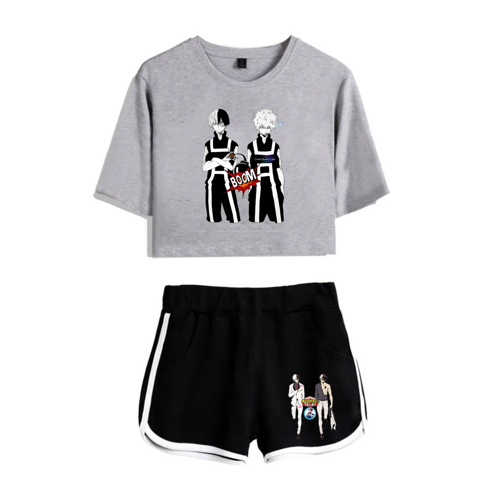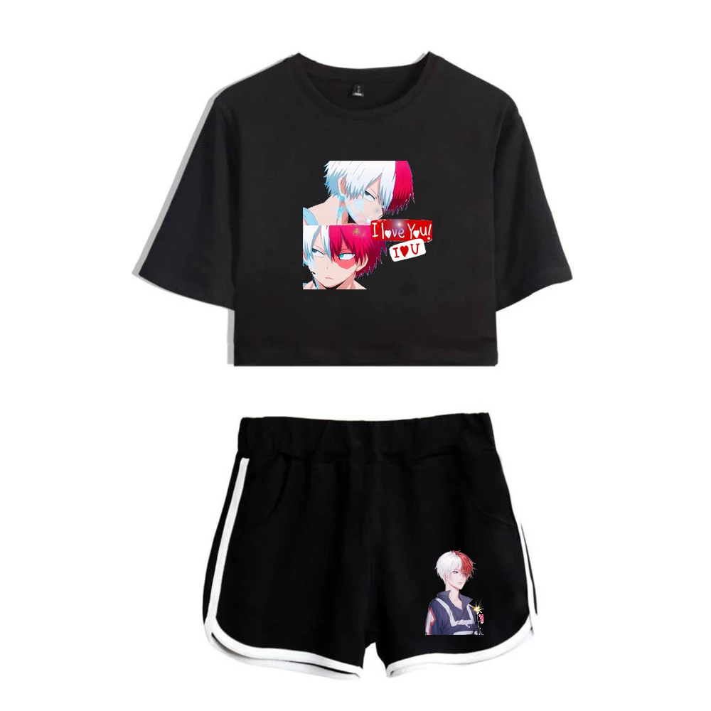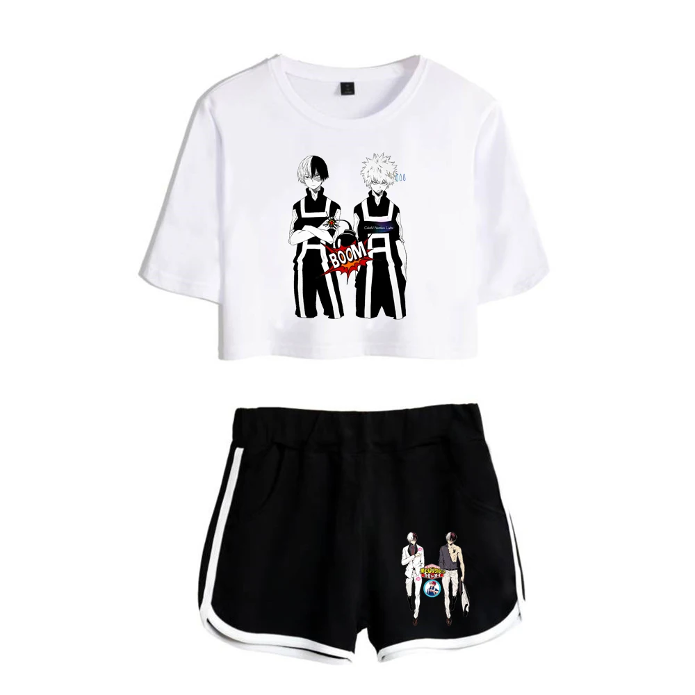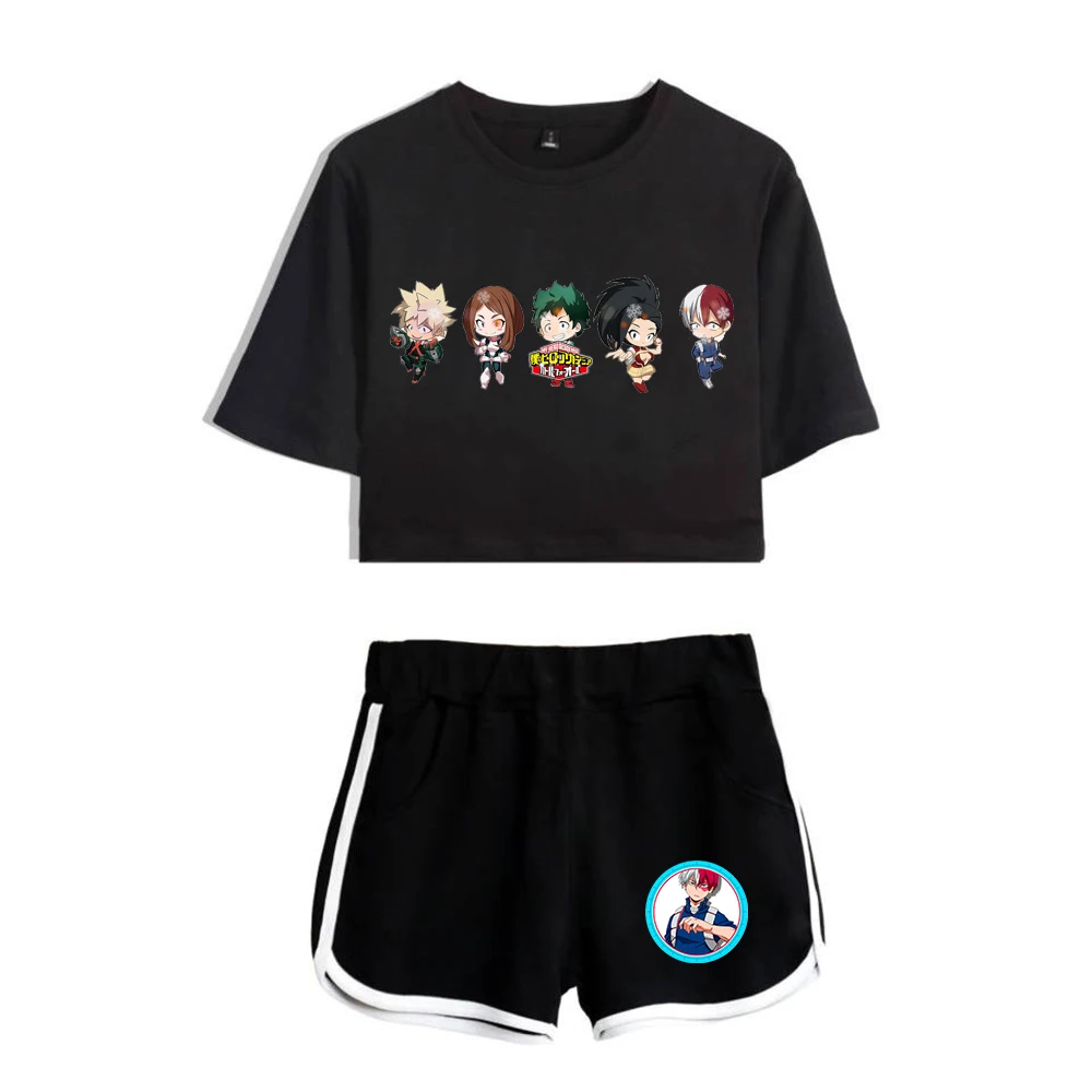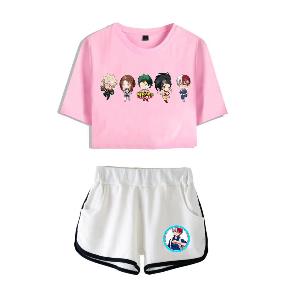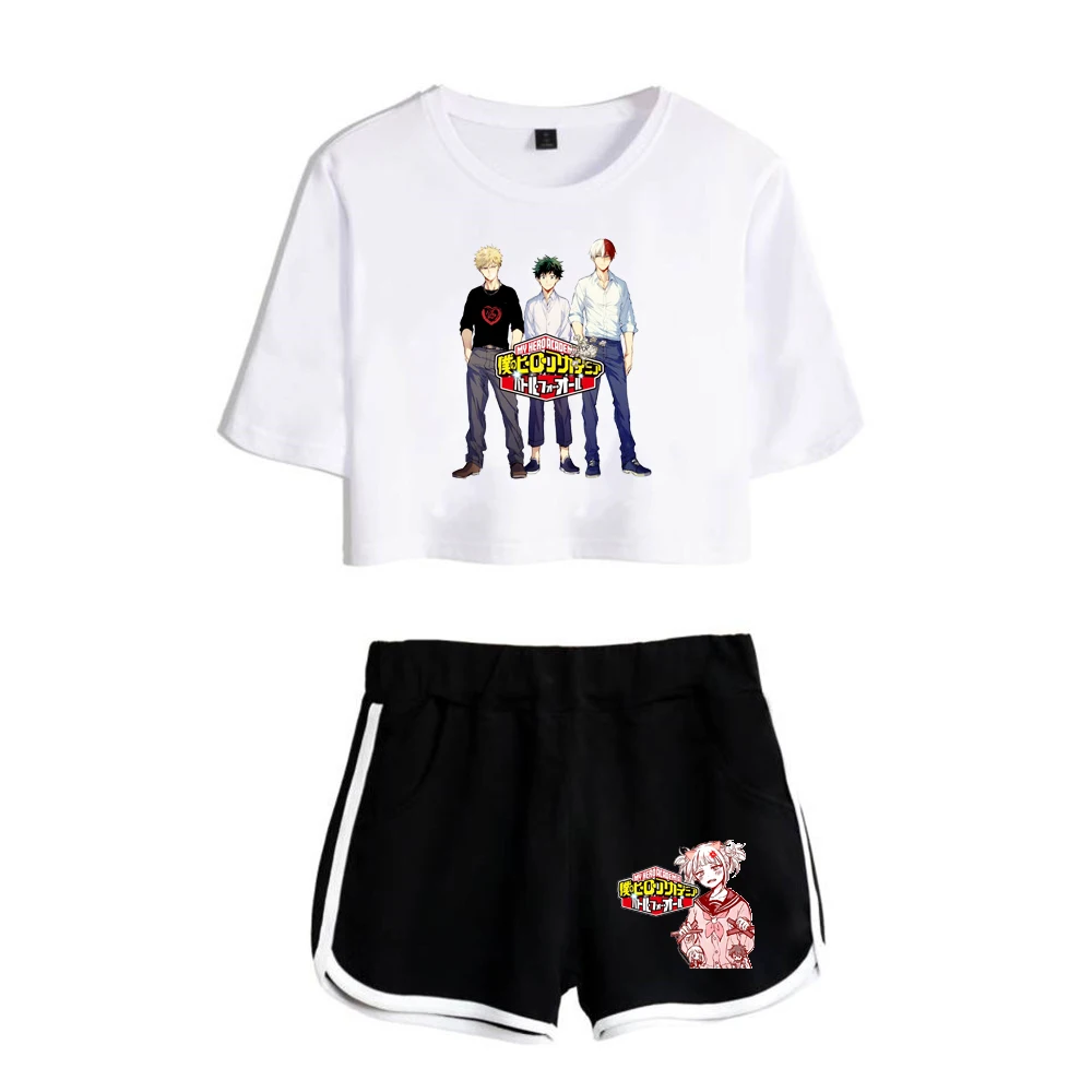 Трендовые кавайные женские герои моя геройская академия, повседневные Сексуальные Спортивные шорты из двух частей + футболка с коротким рукавом, летний костюм для девушек, одежда тодоры