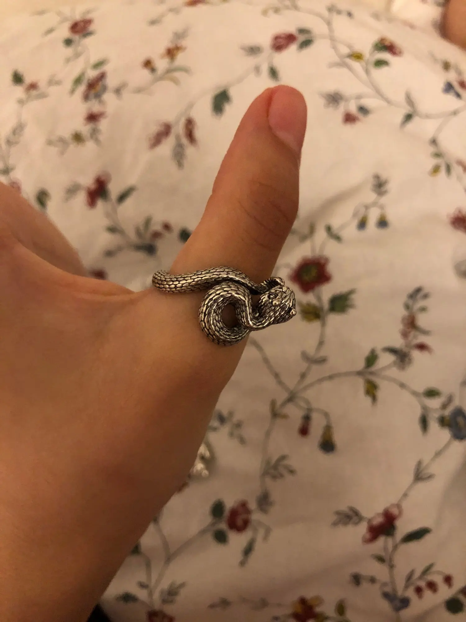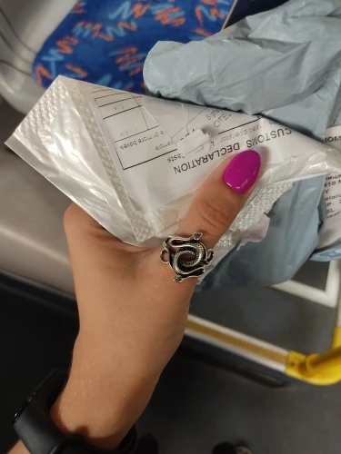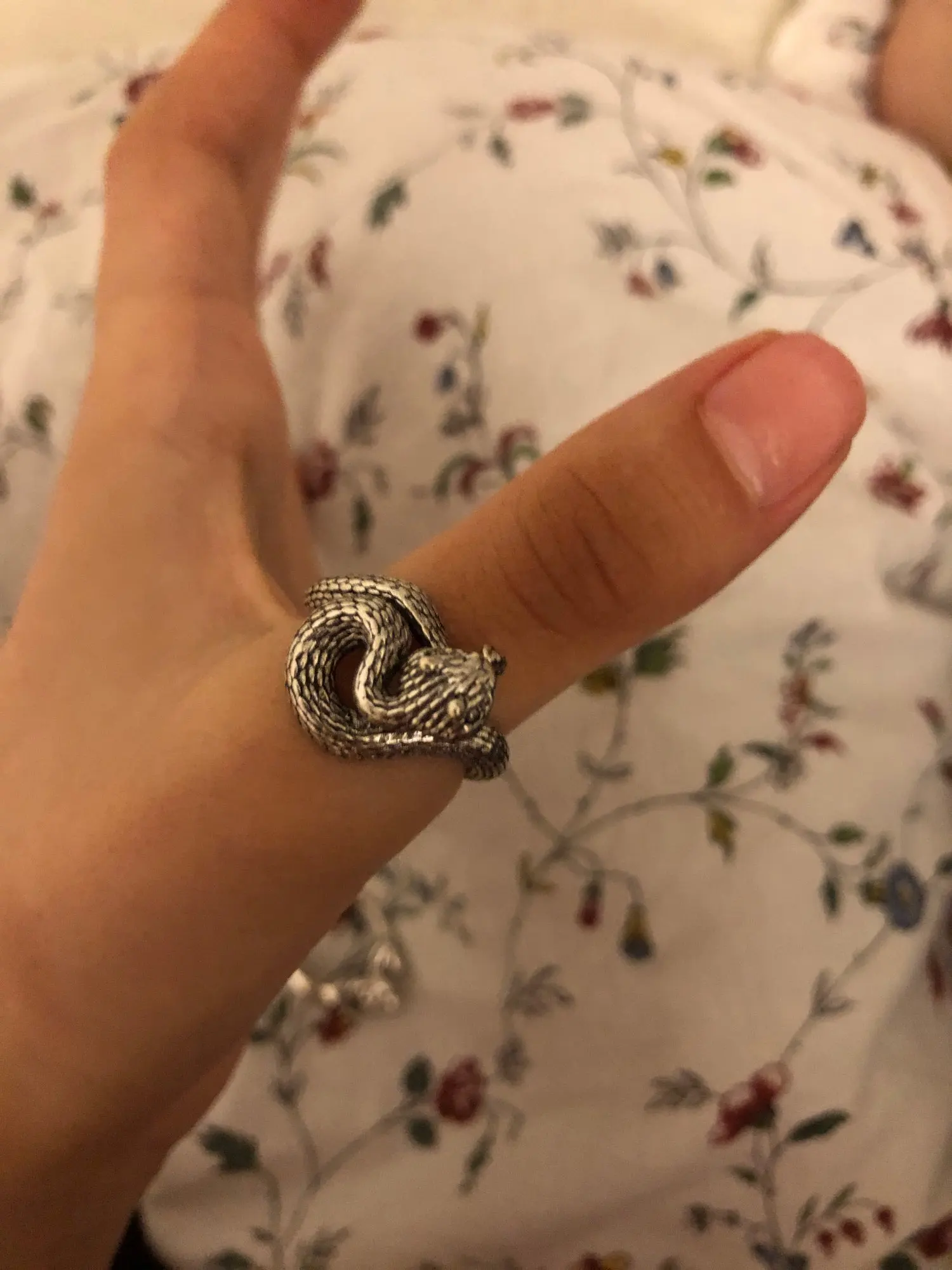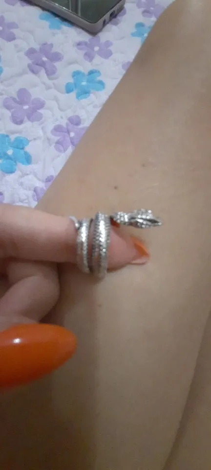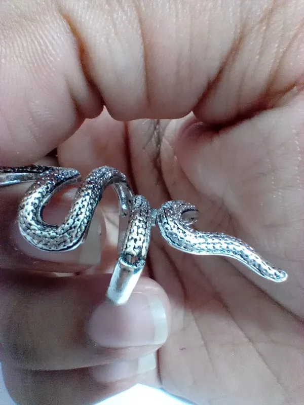 Заказала 12.07 в 11 вечера, пришло 28.07 днём(очень быстрая доставка!). Кольцо достаточно большое, размер действительно регулируется. По очертанию полностью соответствует картинке. Голова змейки детализирована, причем аккуратно, что очень порадовало. Рекомендую продавца.