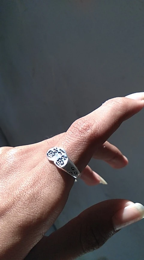 segunda vez que compro. O material é bom e duro mas oxida rápido, por isso, apliquem um esmalte incolor por cima se quiserem que dure mais. A tinta preta também é bem frágil, mas o anel é bem bonito e vale o preço. // foto do anelzinho antigo que oxidou. levou mais ou menos umas três semanas de uso para ele ficar deste jeito.