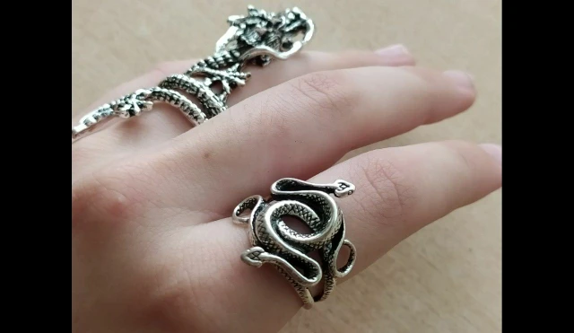 Кольцо оригинальное, смотрится хорошо, одно плохо-очень мягкий металл. Надолго не хватит. Спасибо. Пришло быстро.