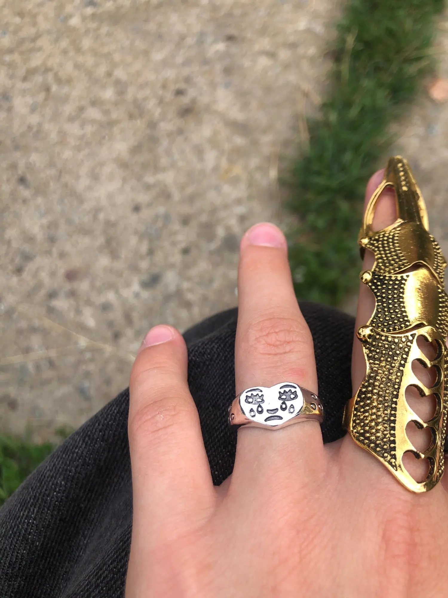 кольцо прекрасное! зацените закос на денджи➹♡ очечи да сюда не очень, но без них я ниче не вижу э про кольцо да, давайте поговорим про него. кольцо само по себе выглядит изумительно, даже маме моей понравилось! очень надеюсь что не сломается, ес че потом допишу отзыв, а если не допишу - не сломалось. вроде прочное так то. я люблю лапшу, поедим лапши? на пополам, да? а еще у меня скоро экзамены и я не готова, у кого тоже экзамены, удачи и терпения! извините пожалуйста если запятые расставлены не так, я не умею иначе, ааа мне жаль правда. так ну думаю хватит:) кольцо классное да! покупайте, пришло за 2~ недели думаю, крутяк!