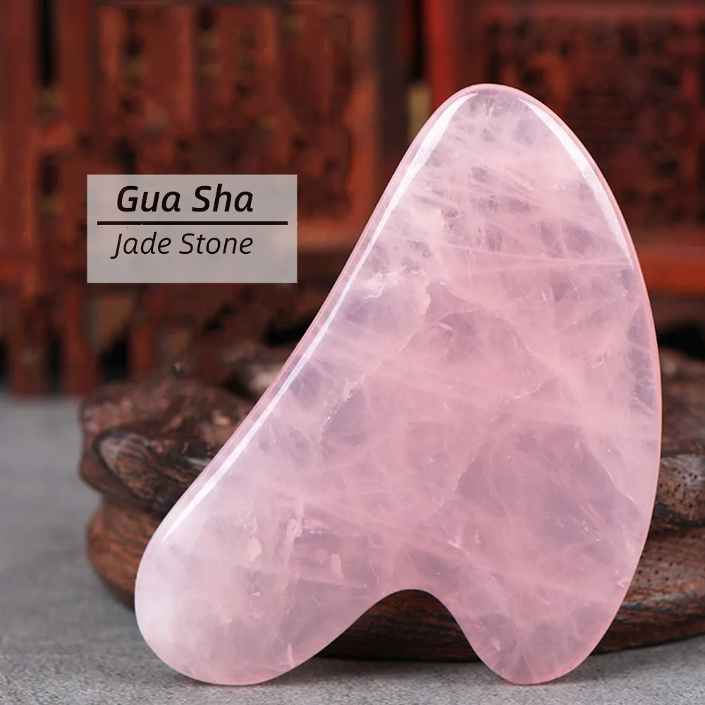 Массажер гуашный из натурального кварца, набор из розового нефрита ...