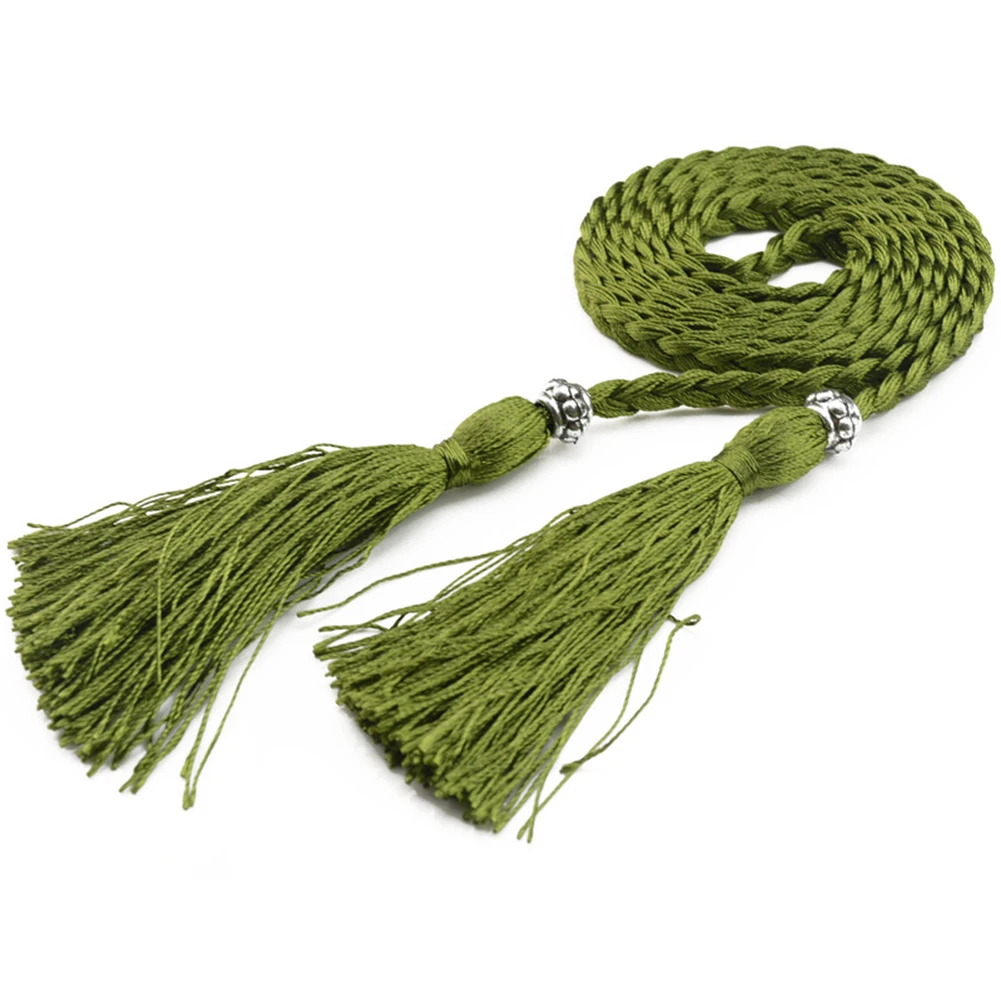 Китайский плетеный стиль, плетеный пояс с кисточками, украшенный узлом, цепочка на талию, веревка на талию