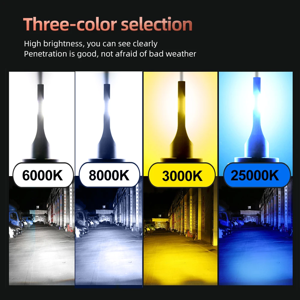 Лампа для автомобильных противотуманных фар H4 H7 LED 12000LM H1 H13 H8 H9 H11 9005 HB3 9006 HB4, 12 В, 3000K, 6000K, 25000K