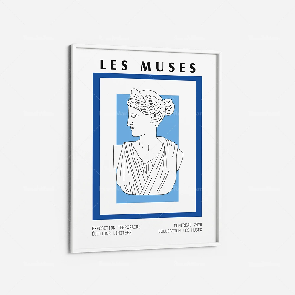 Статуя бюста греческой богини Les Muses, жемчужная оболочка, клетчатая Художественная печать, мягкая художественная абстрактная статуя Les Muses музейный плакат po