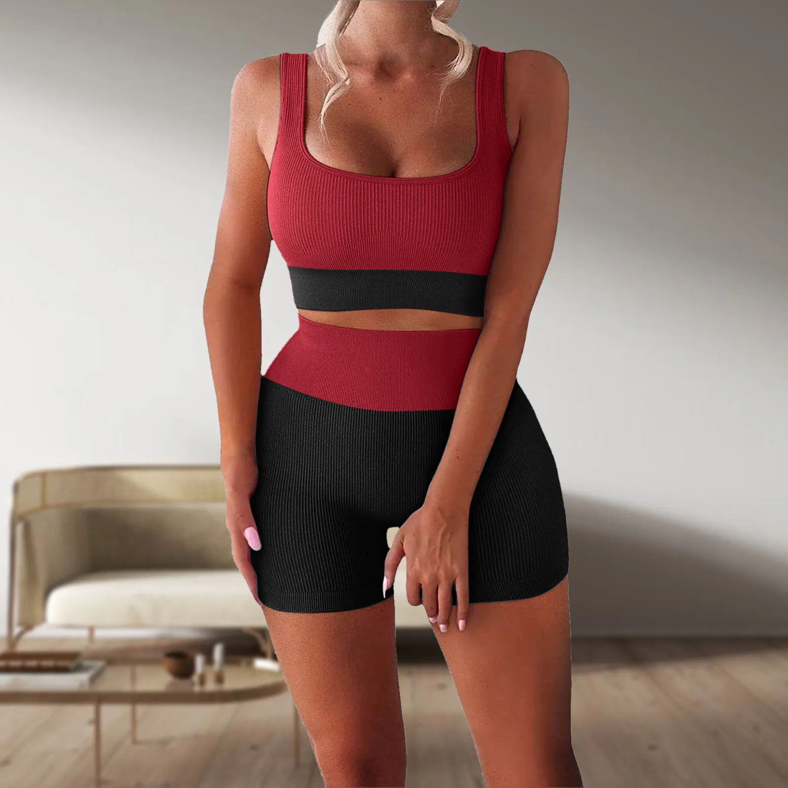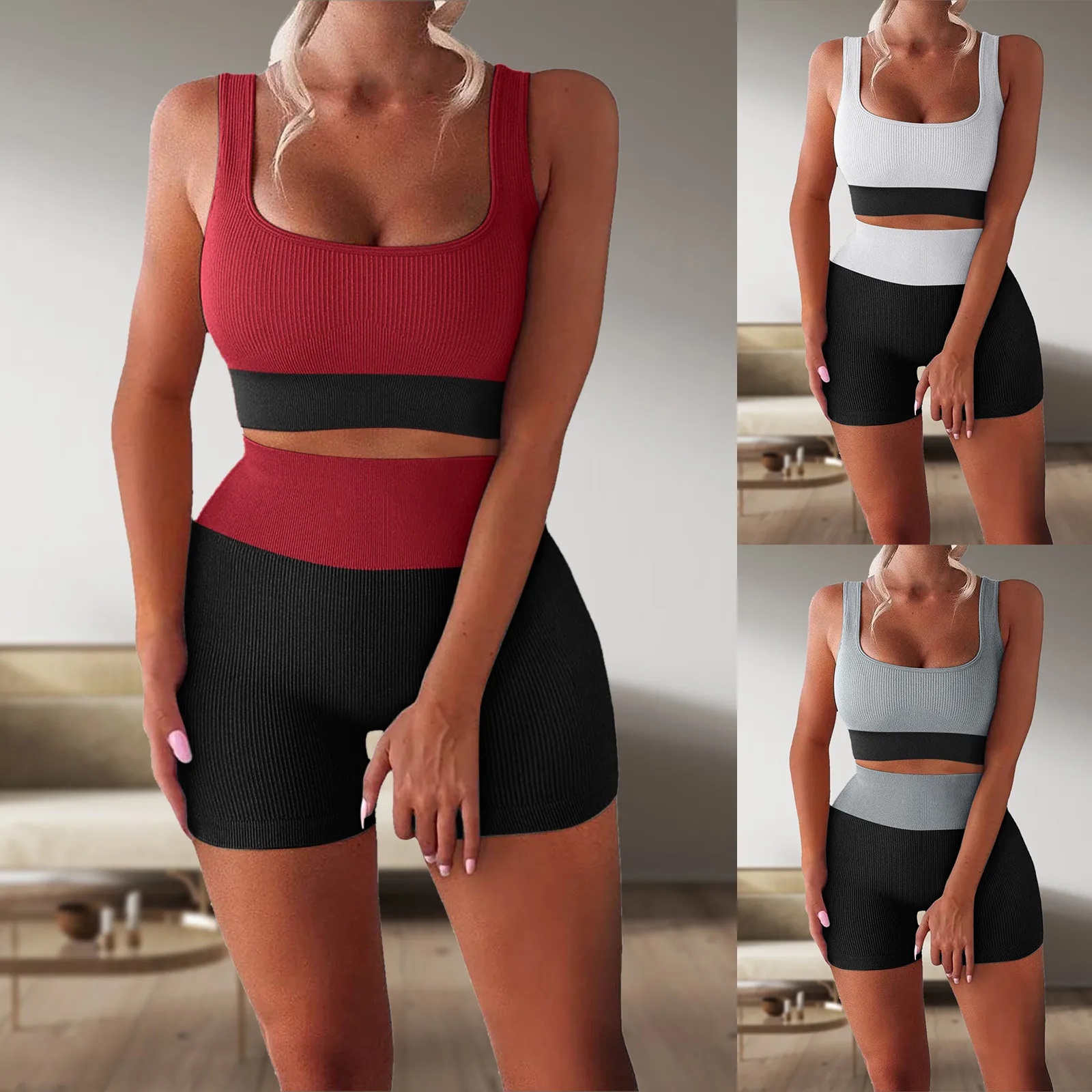 Комплект Для Йоги Женский, одежда для фитнеса и спортзала, комплект для тренировок с принтом, бесшовная Майка из 2 предметов, шорты с высокой талией, для занятий йогой
