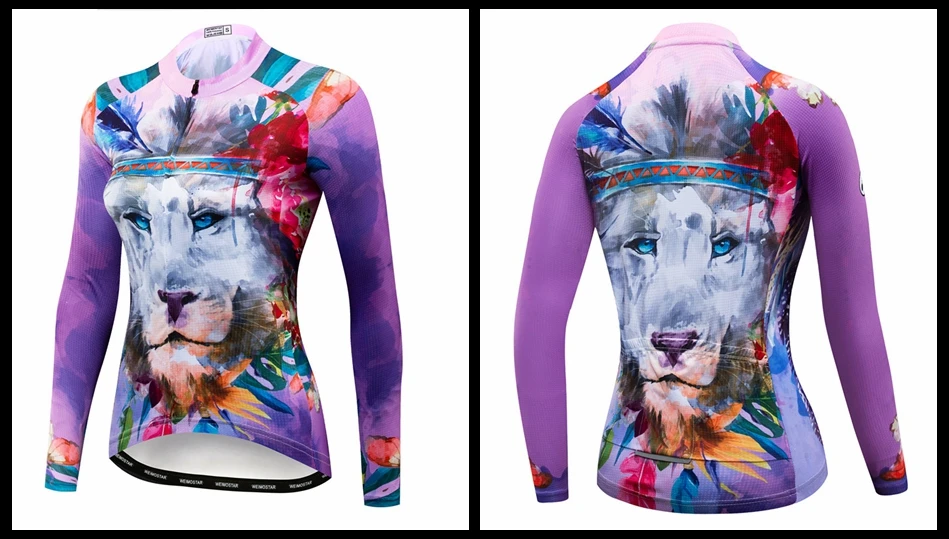 Осенняя Женская велосипедная Джерси с длинным рукавом, одежда для велоспорта с изображением Льва, дышащая футболка для горного велосипеда
