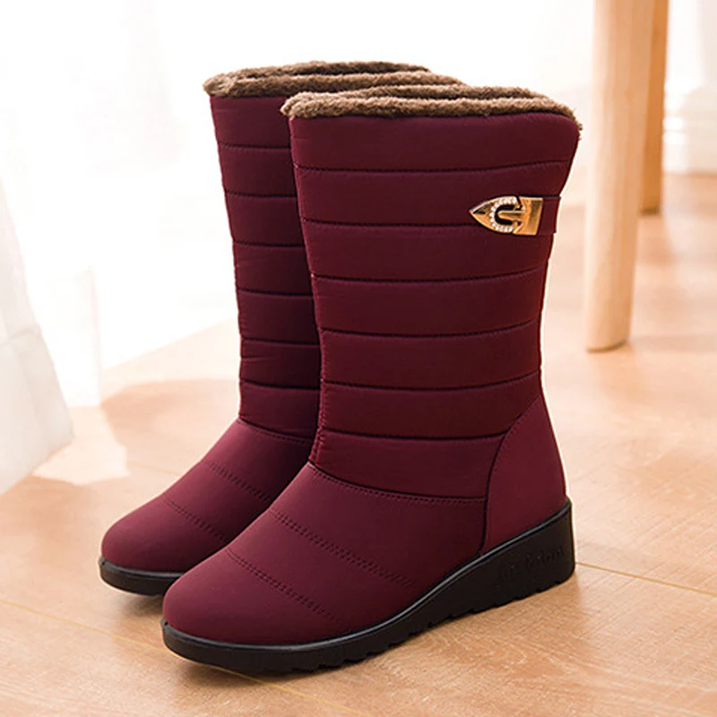 Ботинки женские зимние до середины икры, плюшевые водонепроницаемые теплые сапоги, зимняя обувь