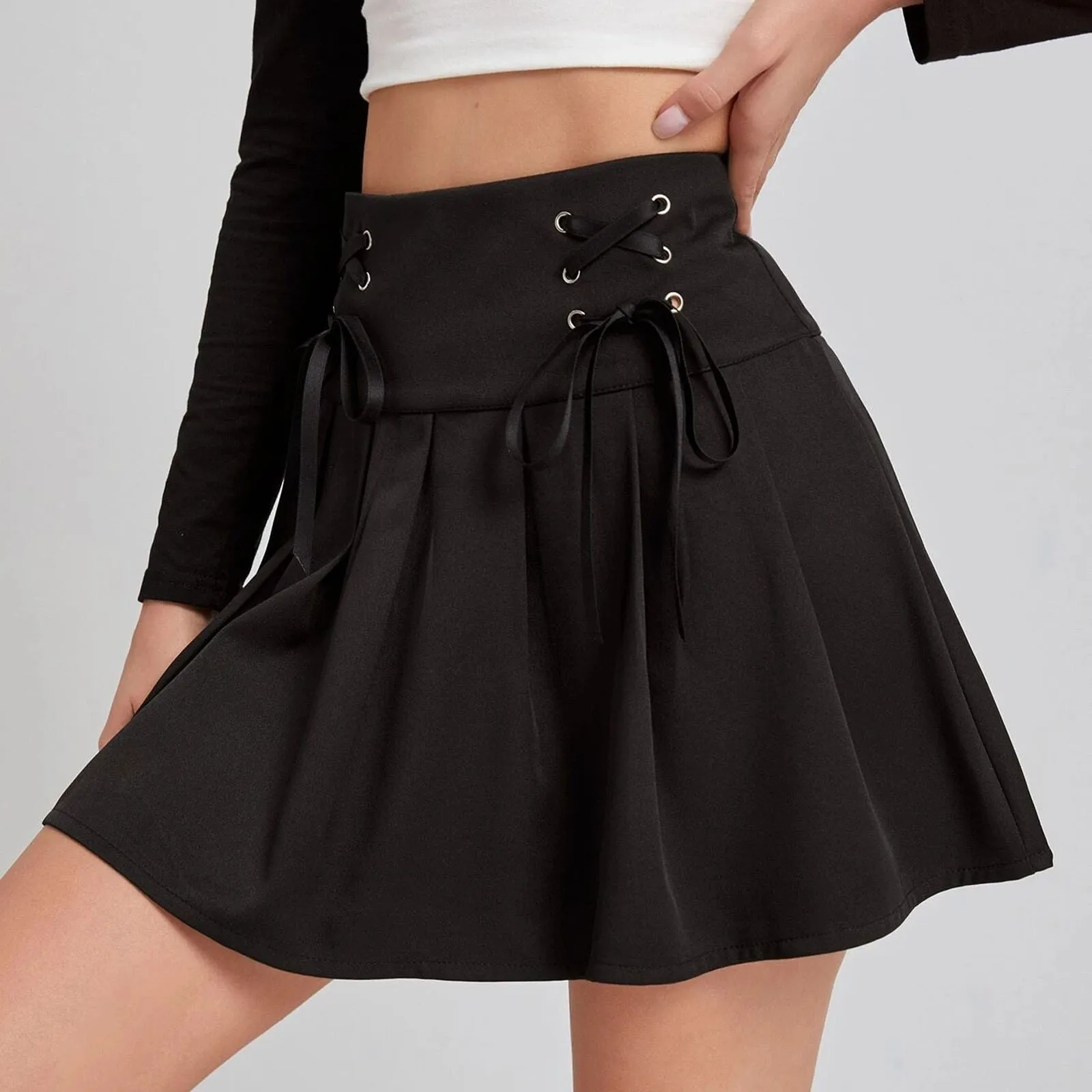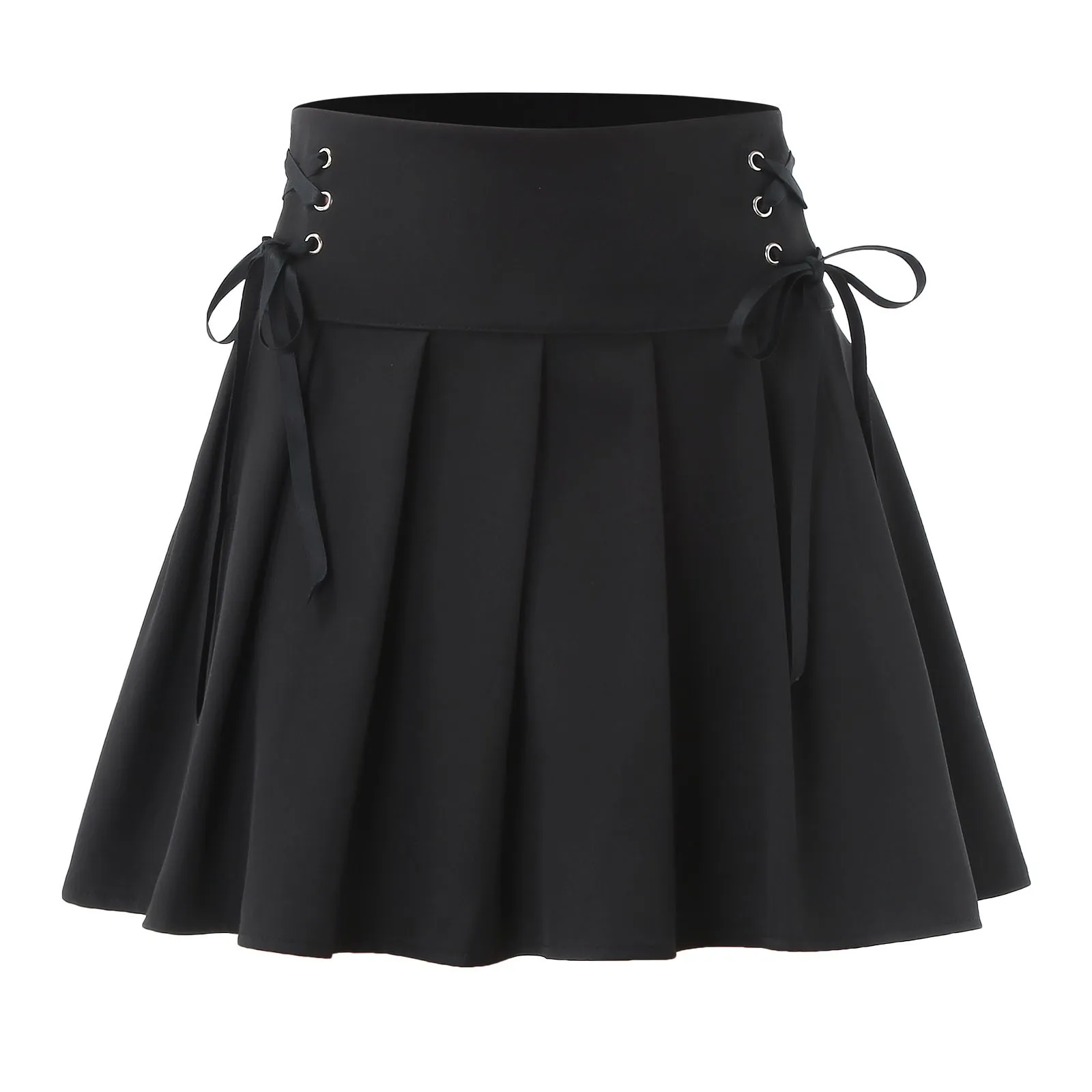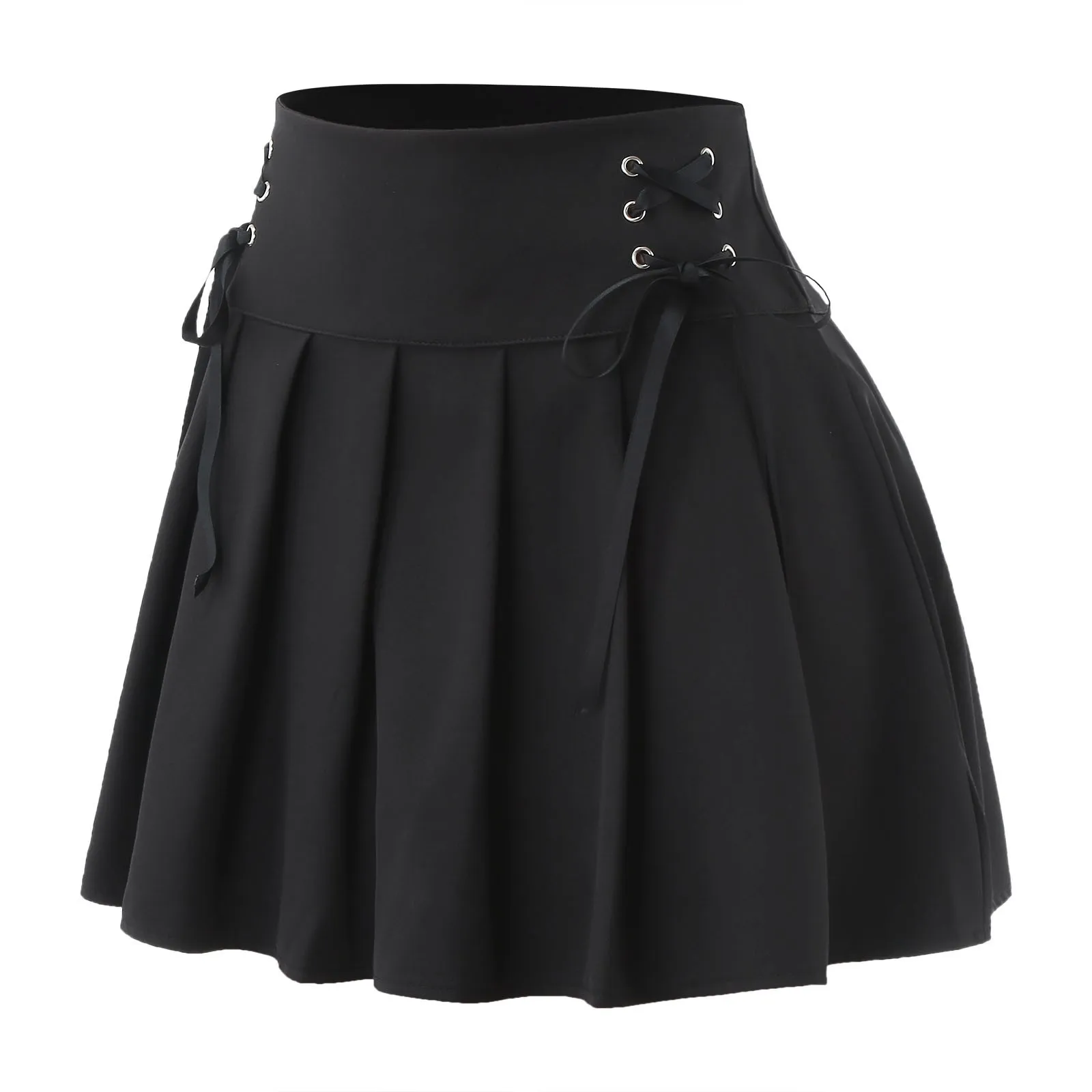 Женская винтажная мини-Юбка на шнуровке, черная короткая Юбка С Выс...