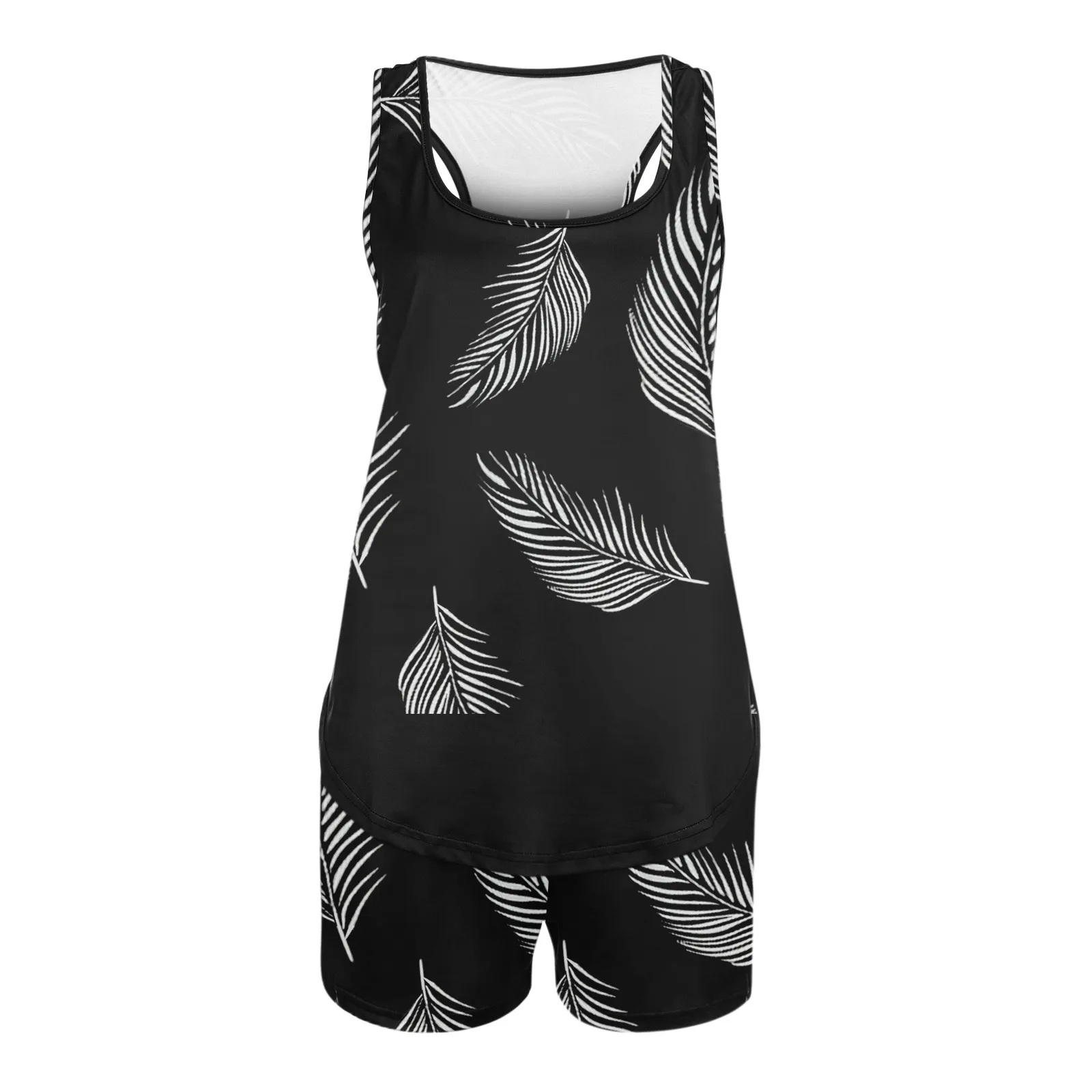 Спортивная одежда с принтом перьев, женский спортивный костюм с принтом без рукавов, повседневный жилет, костюм из двух предметов, спортивная одежда, женская одежда