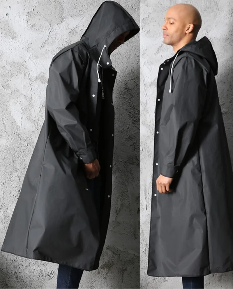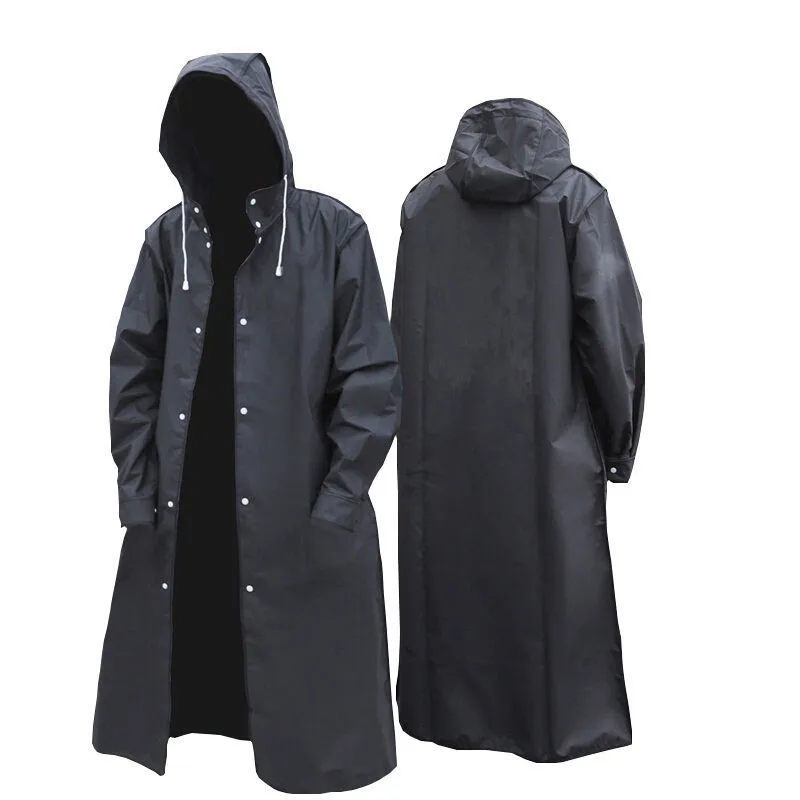 Черный дождевик для взрослых, водонепроницаемый длинный дождевик для женщин и мужчин, уличный дождевик из ЭВА с капюшоном, для пеших прогулок, альпинизма, велоспорта, утолщенный дождевик
