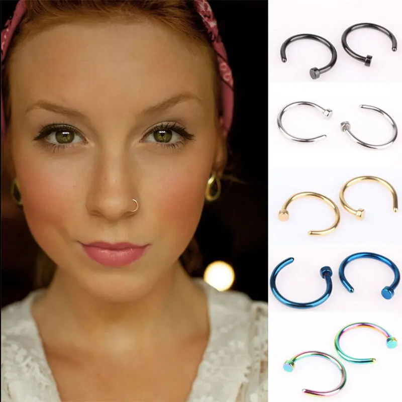 5 шт. 8 мм панк кольцо из нержавеющей стали с зажимом для носа коль...