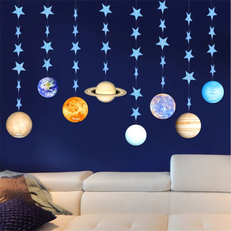Космическая система Галактики, гирлянда, восемь планет, баннер, украшения для детского душа, украшения для дня рождения, вечеринки, принадлежности