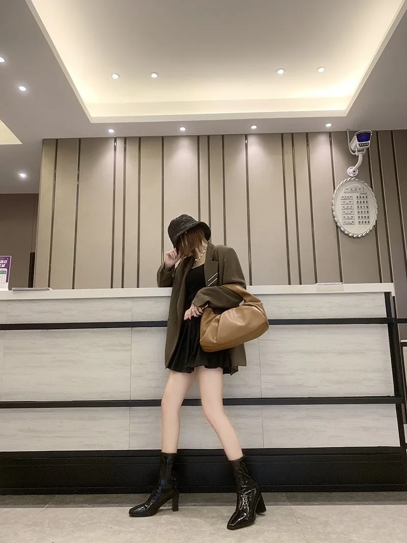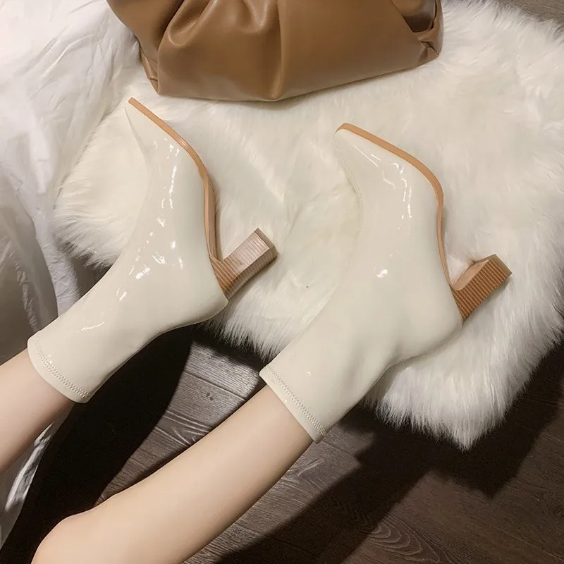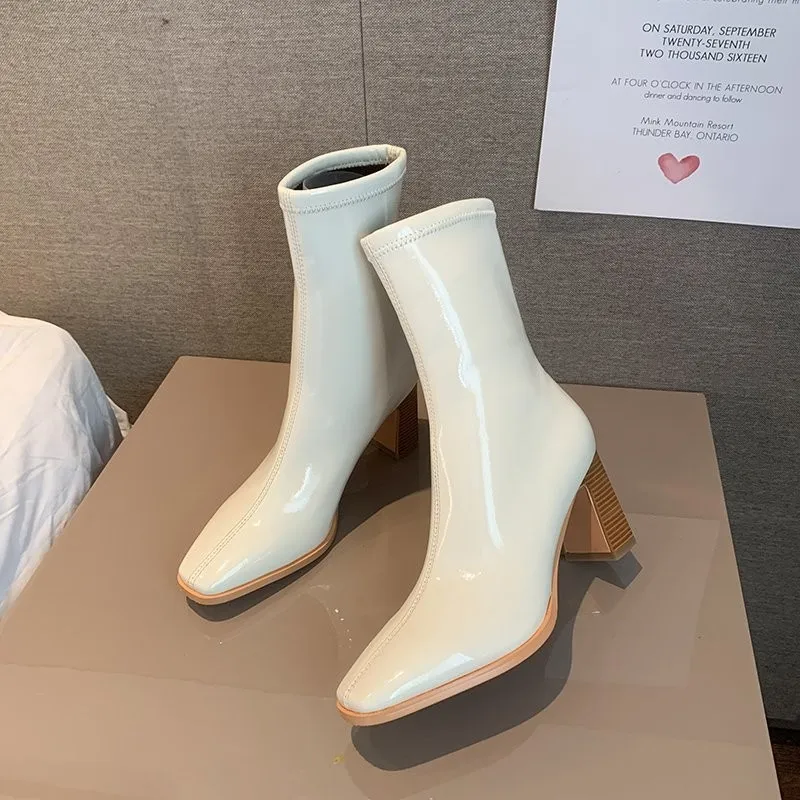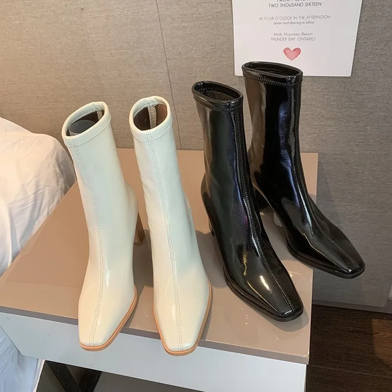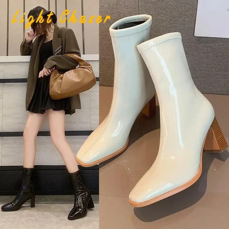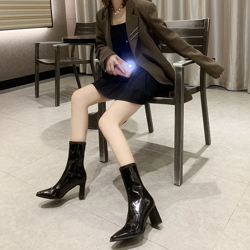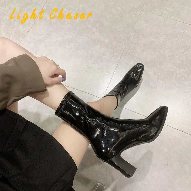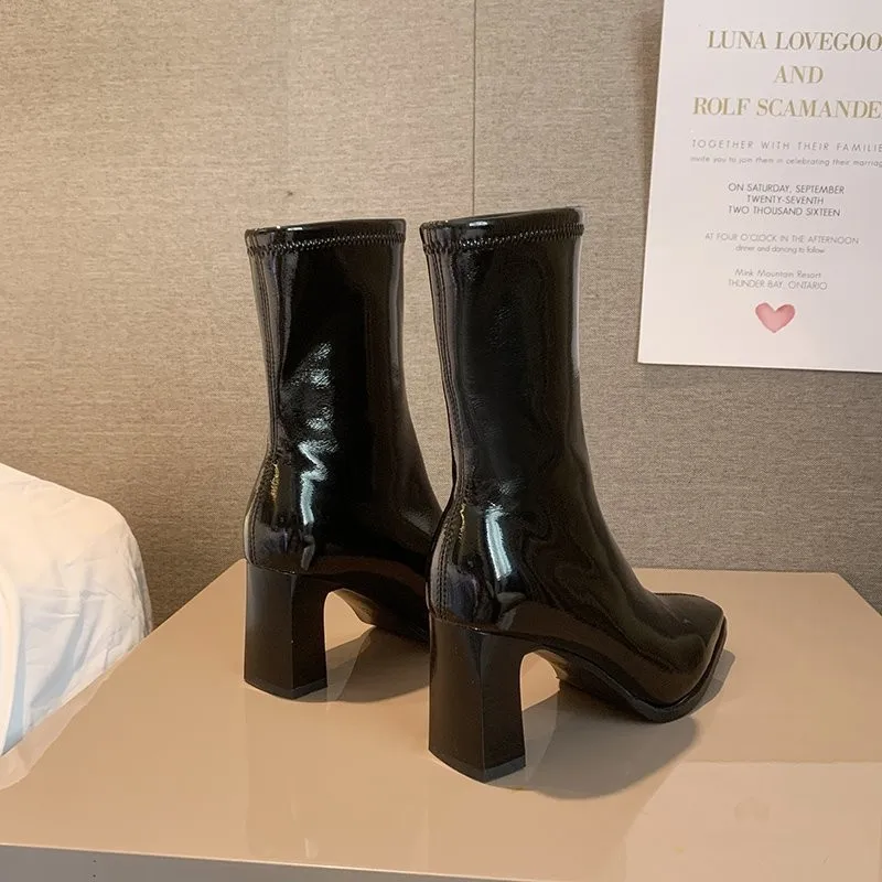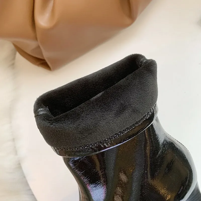 Женские короткие ботинки Martn на толстом каблуке, из лакированной ...