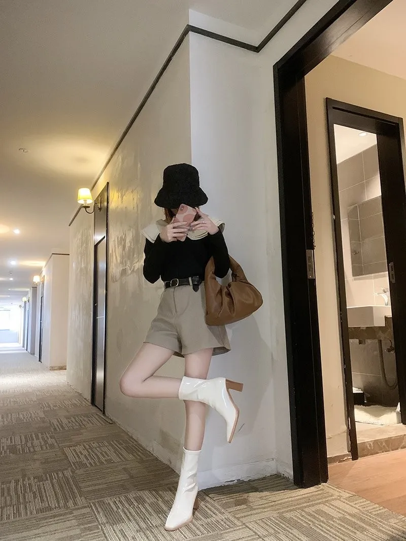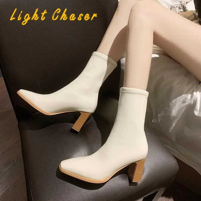Женские сексуальные сапоги, женские зимние высокие сапоги на высоком каблуке, теплые женские высокие сапоги, новые женские эластичные сапоги на высоком каблуке для весны