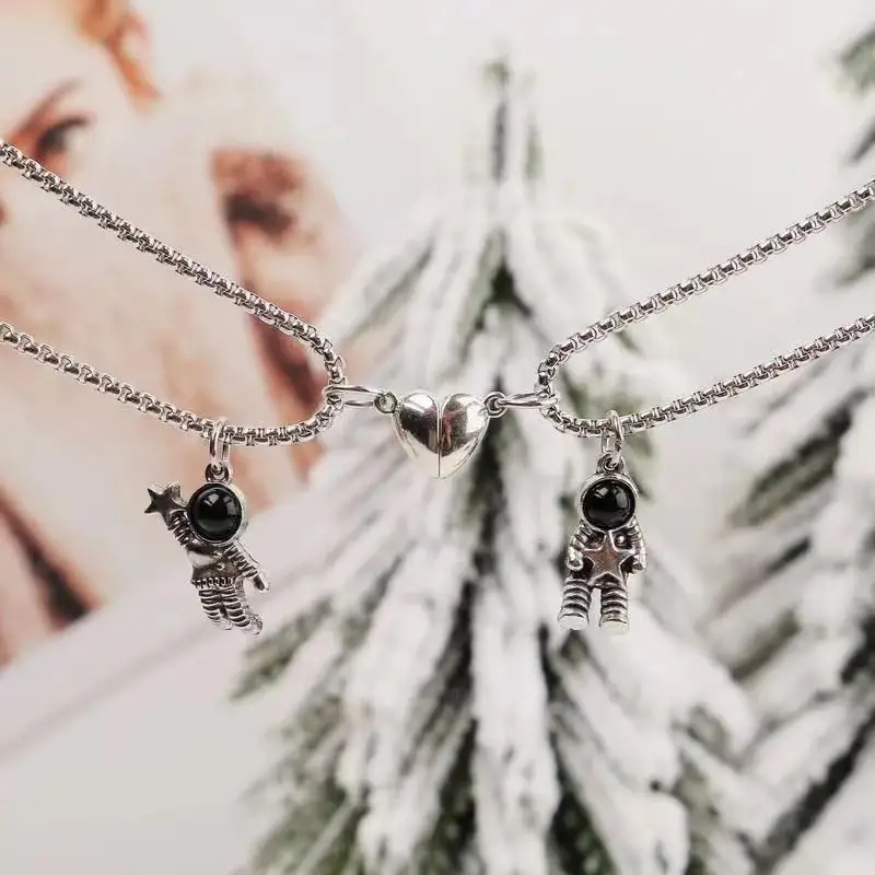 Магнитные Подвески Spaceman в форме сердца, ожерелье для влюбленных пар, астронавт, лучшие друзья, дружба, подходящая цепочка на шею для женщин и мужчин парные подвески кулоны для лп парные украшения подарок