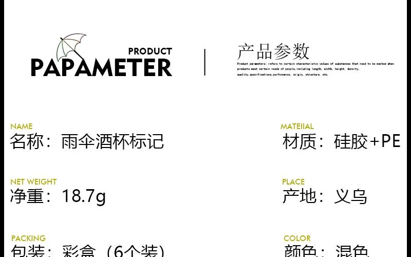 6 шт. силиконовый зонтик для вечевечерние, маркер на стакан для вин...