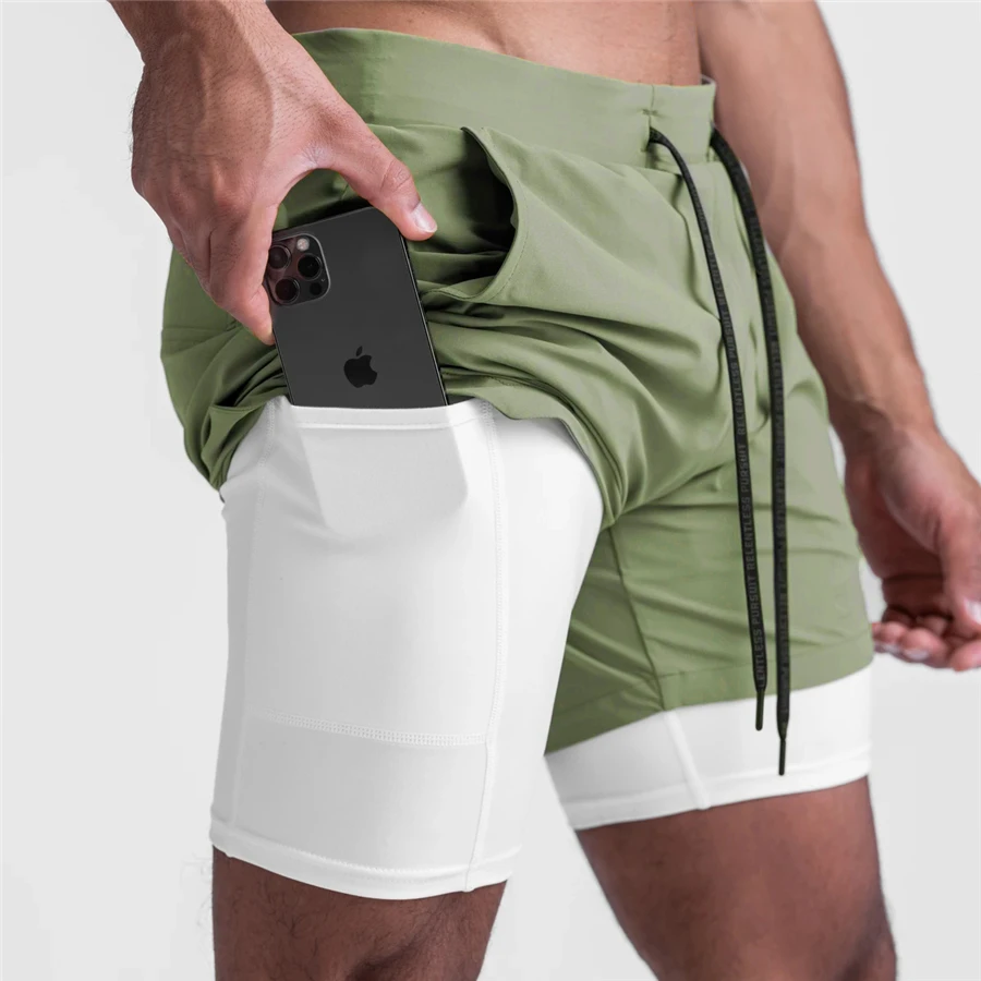 Мужские спортивные шорты 2 в 1, шорты для бега и фитнеса, быстросох...