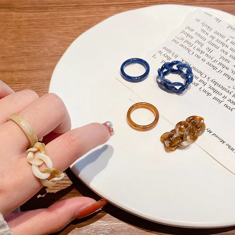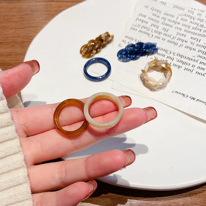Женский набор колец из акрила и смолы, корейский стиль, синяя, бежевая, коричневая цепочка, круглые кольца, Подарочная бижутерия для свадебной вечеринки