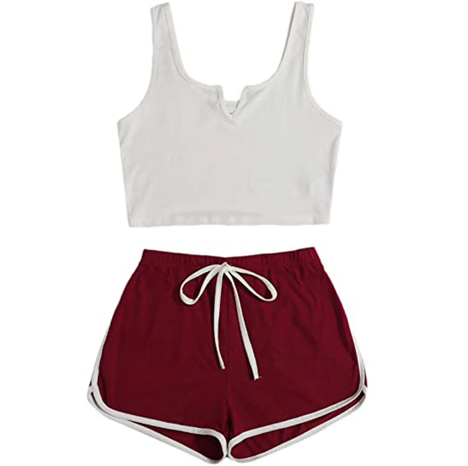 Женский модный костюм с шортами, однотонный костюм из двух предметов, повседневный топ без рукавов и Шорты, Женский ский костюм большого размера