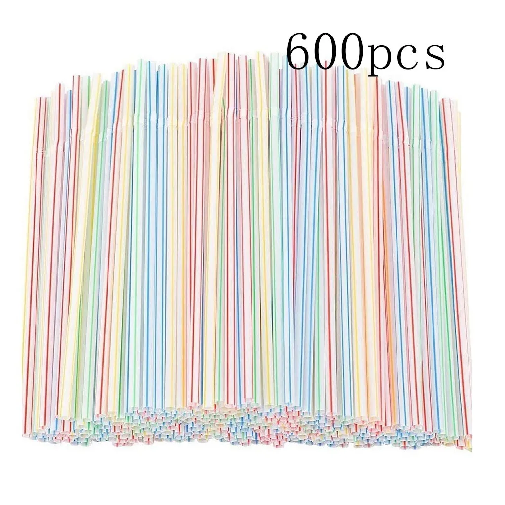 600 шт. одноразовые трубочки, гибкие пластиковые трубочки, полосатые разноцветные радужные трубочки для питья, трубочки, аксессуары 2021