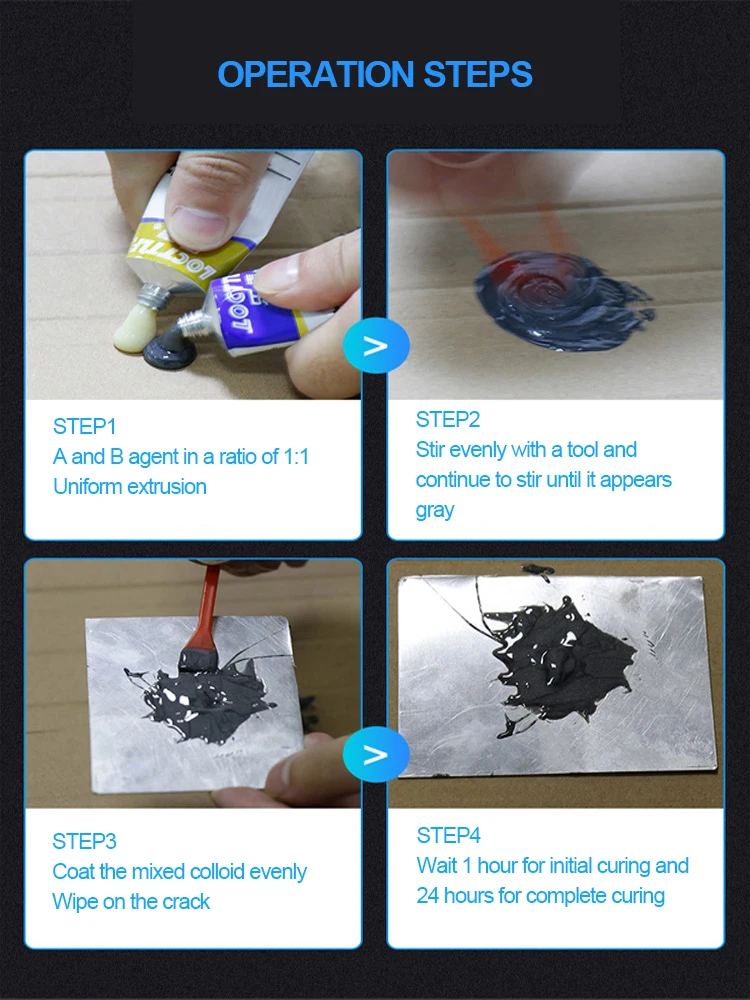 VerwendetFür schnelle verklebung von metall, glas, keramik, kunstoff, holz,И т. Д. verwendet für eisen und stahl gussteile, gefüllt blasen, poren oderRisse, литье mängel, hohe aushärtung