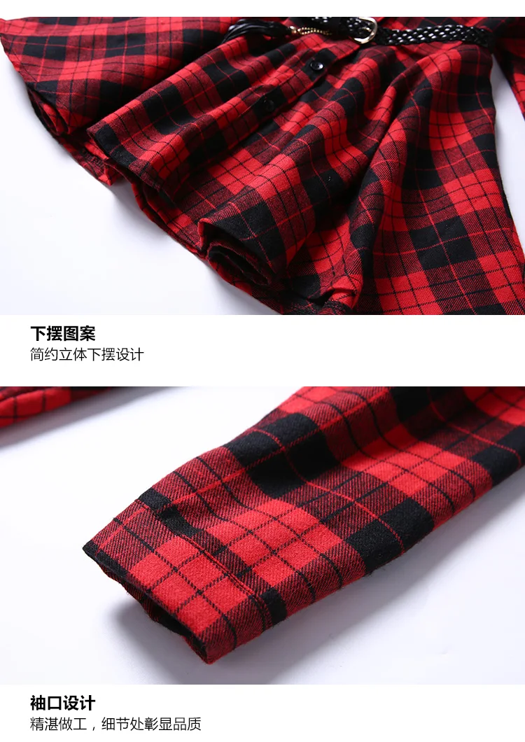 2019 Элегантное повседневное клетчатое платье-рубашка для девочек с...