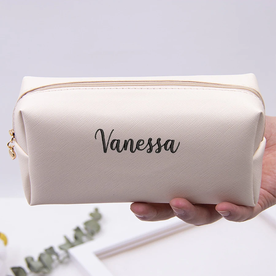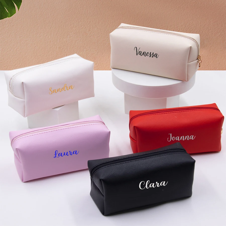 Небольшая косметичка из искусственной кожи с индивидуальной вышивкой, дорожная косметичка, сумка для туалетных принадлежностей для женщин, портативная водостойкая