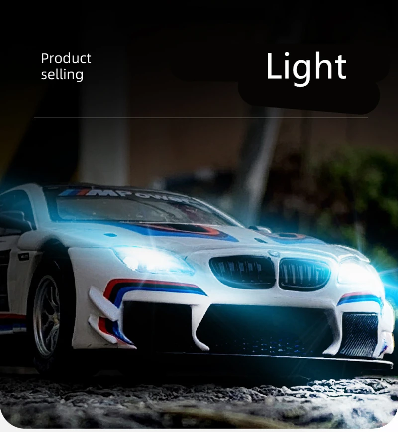 Модель гоночного автомобиля BMW M6 GT3 из сплава, модель литая и игрушечного автомобиля, металлическая Игрушечная модель автомобиля, коллекция имитации звука и светильник, подарок для детей, 132