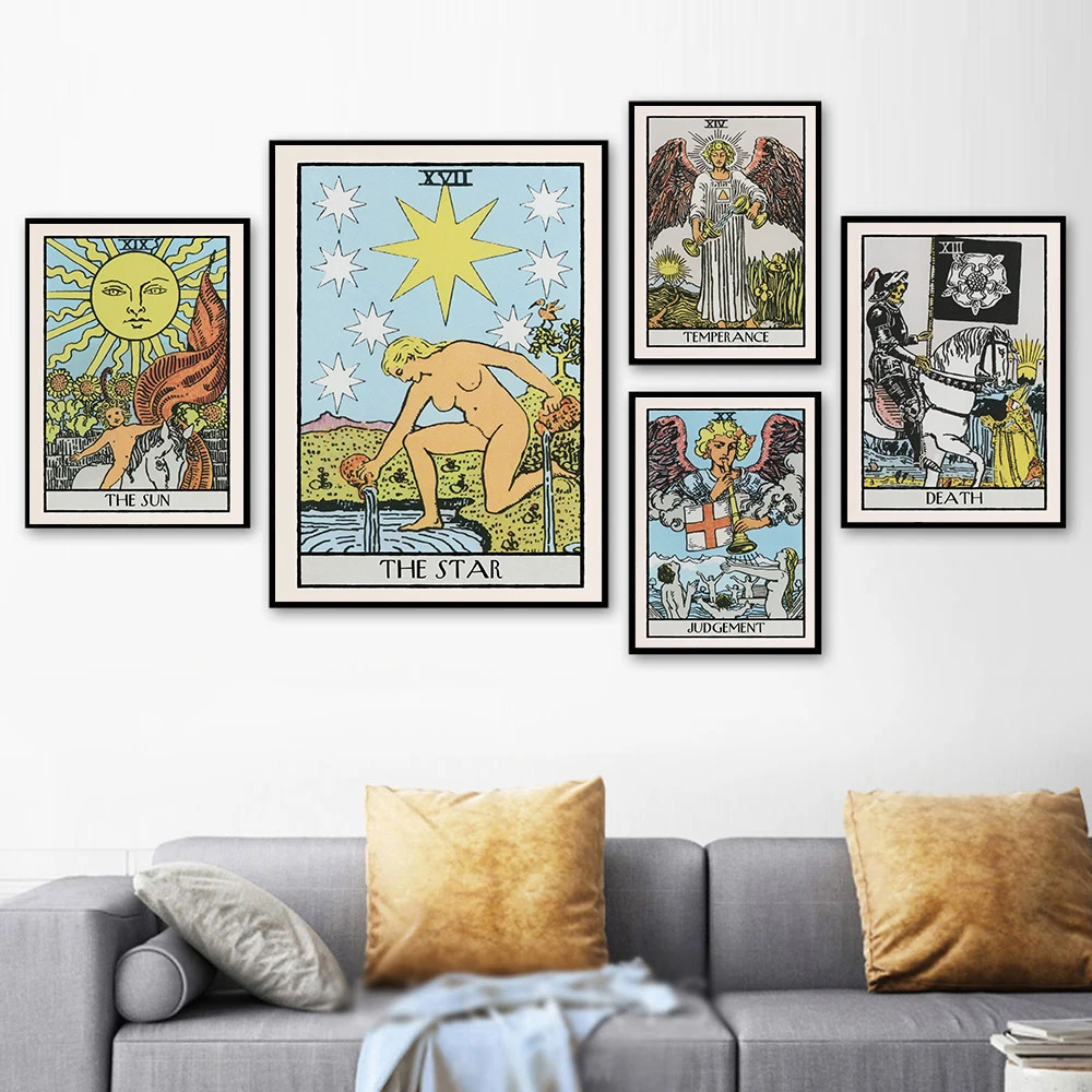 Карта Таро Fortune Telling, принты, настенное искусство, Знак зодиака, цитата, постер, сила, звезда, солнце, холст, живопись, ретро, картины, Декор