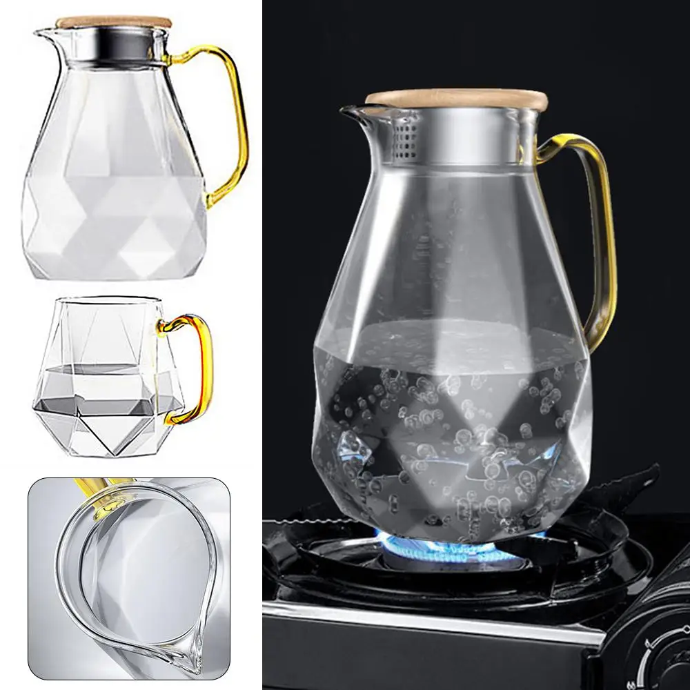 Алмазный стеклянный чайный набор, чайник для горячей и холодной воды, прозрачный кофейник, чайник, емкость для воды, термостойкий чайный набор HFD889