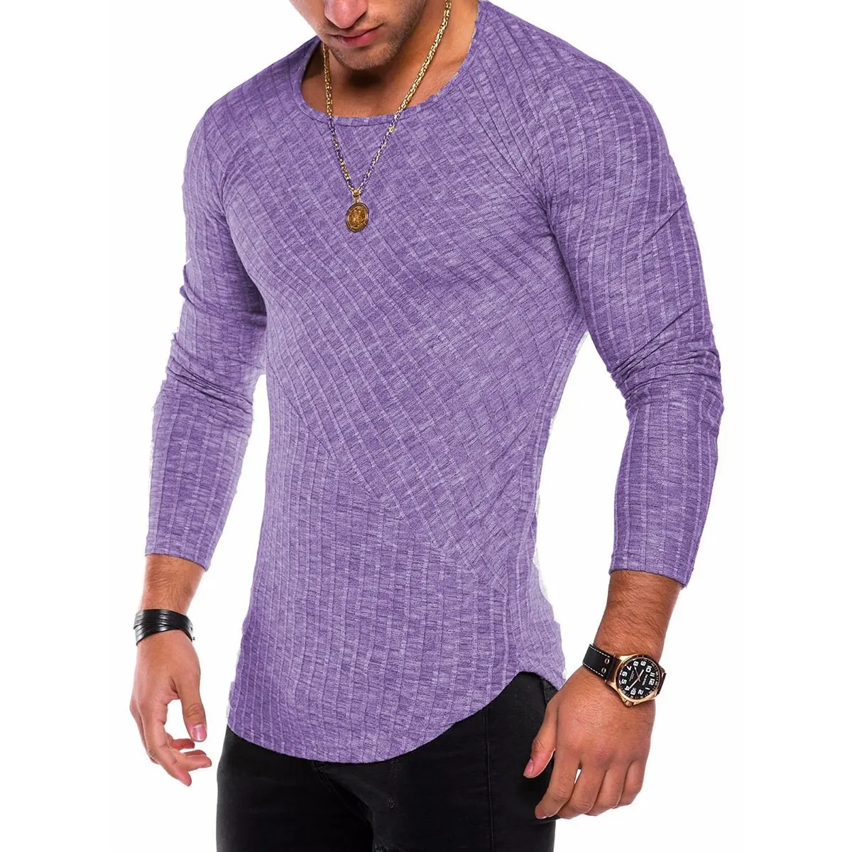 Футболка мужская приталенная с длинным рукавом, уличная модная повседневная хлопковая рубашка с круглым вырезом, разные цвета, легко собирается, Осень-зима