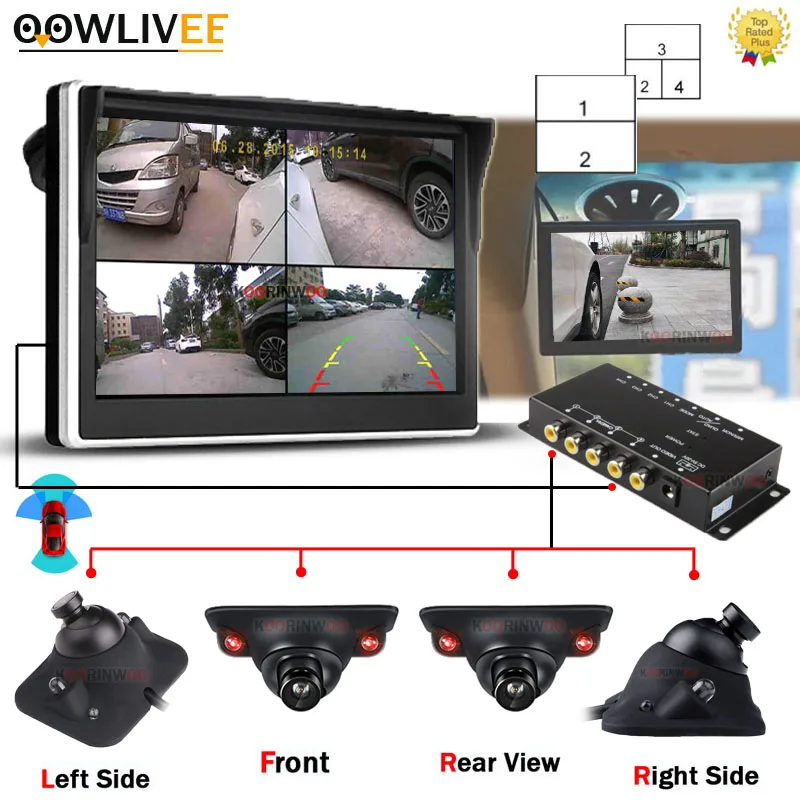 OOWLIVEE многофункциональная умная система Автомобильная камера ИК датчики 360 Круглый вид разделение 4 видео каналы коробка боковой вид Передняя Задняя камера