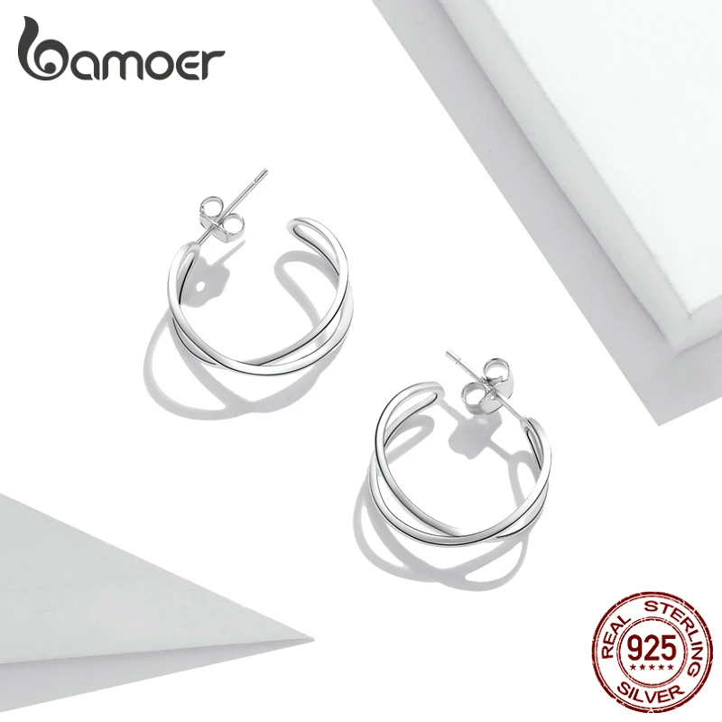 Женские серьги-пусеты bamoer, ювелирное изделие из 100% настоящего ...