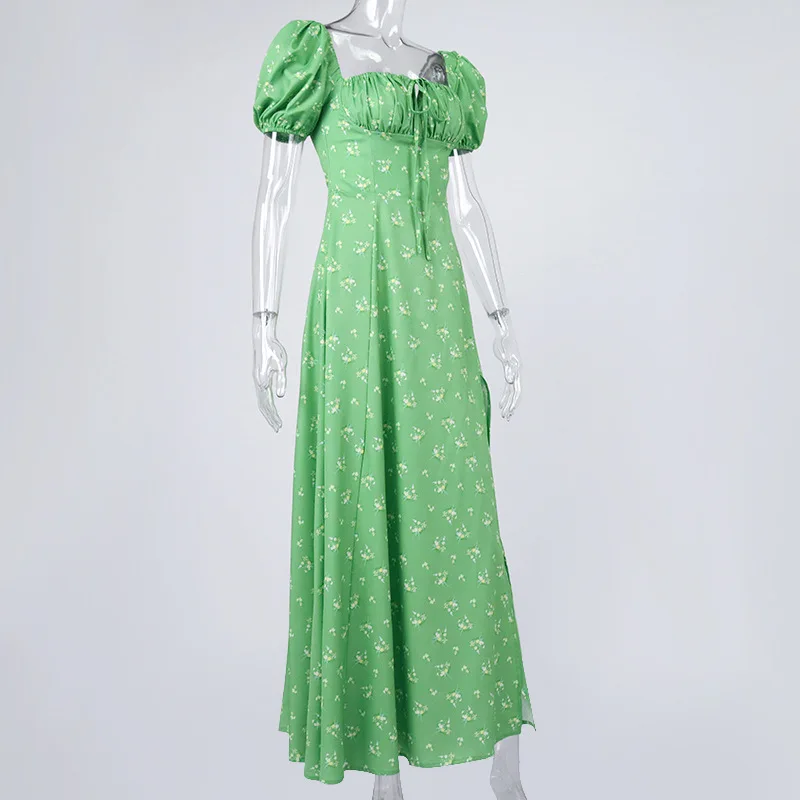 Женское летнее платье макси с коротким рукавом-фонариком, оборками ...