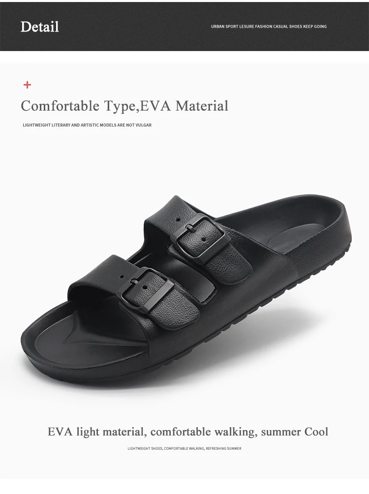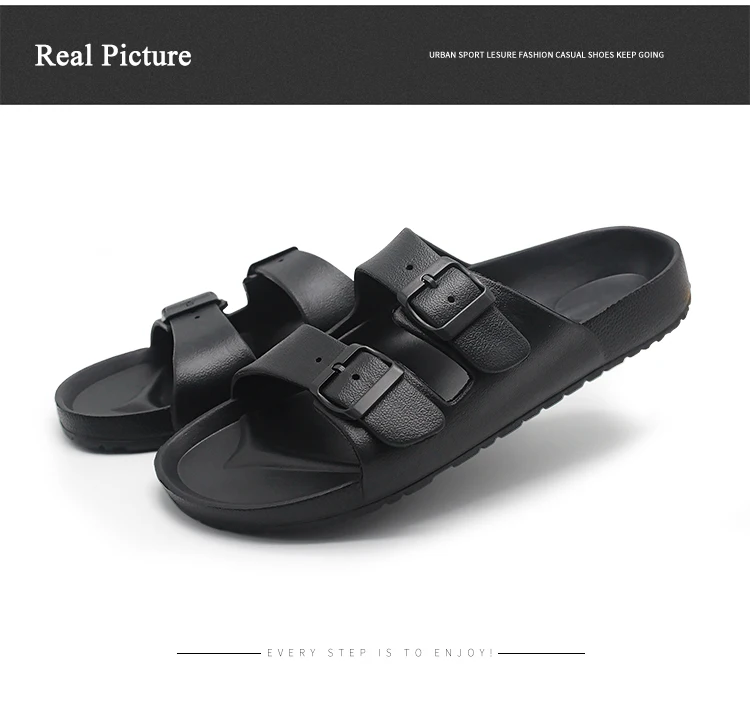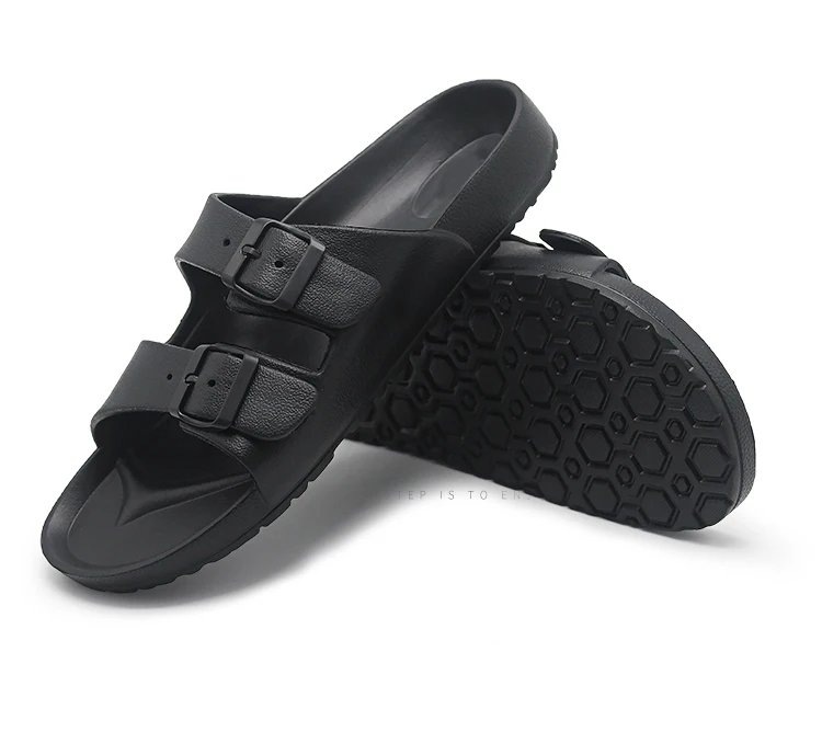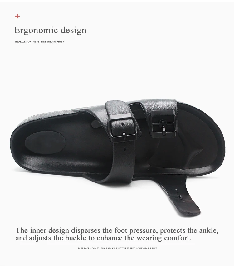 Классические черные шлепанцы на плоской подошве с супинатором, 2 ремешка, регулируемая двойная пряжка, шлепанцы, нескользящая резиновая подошва