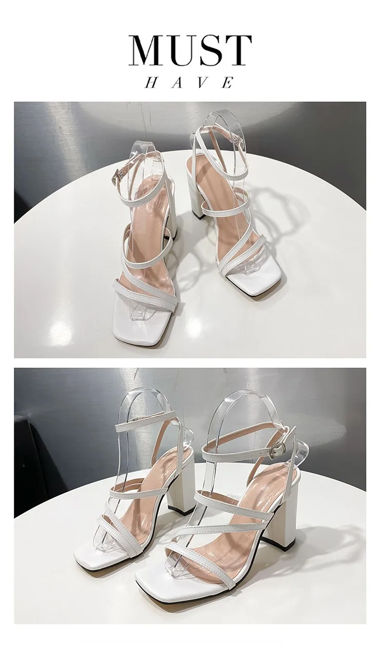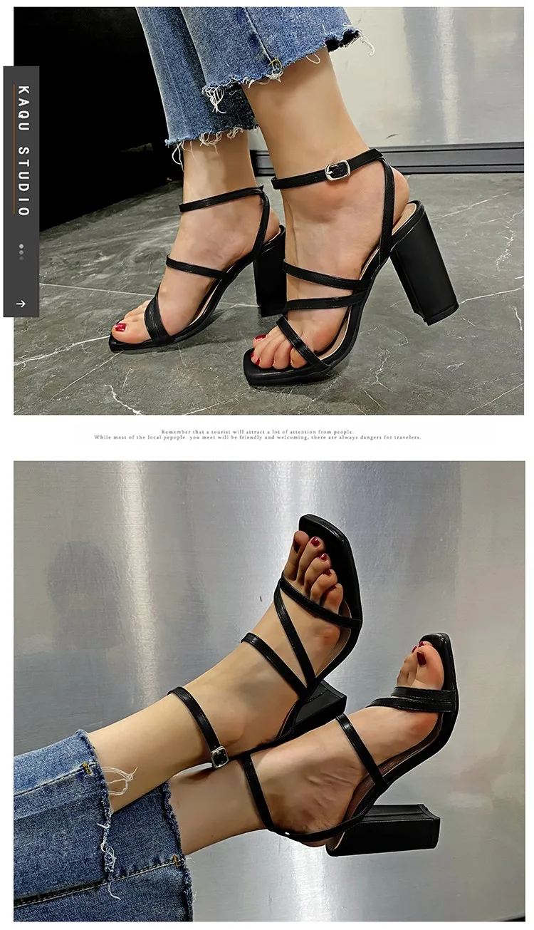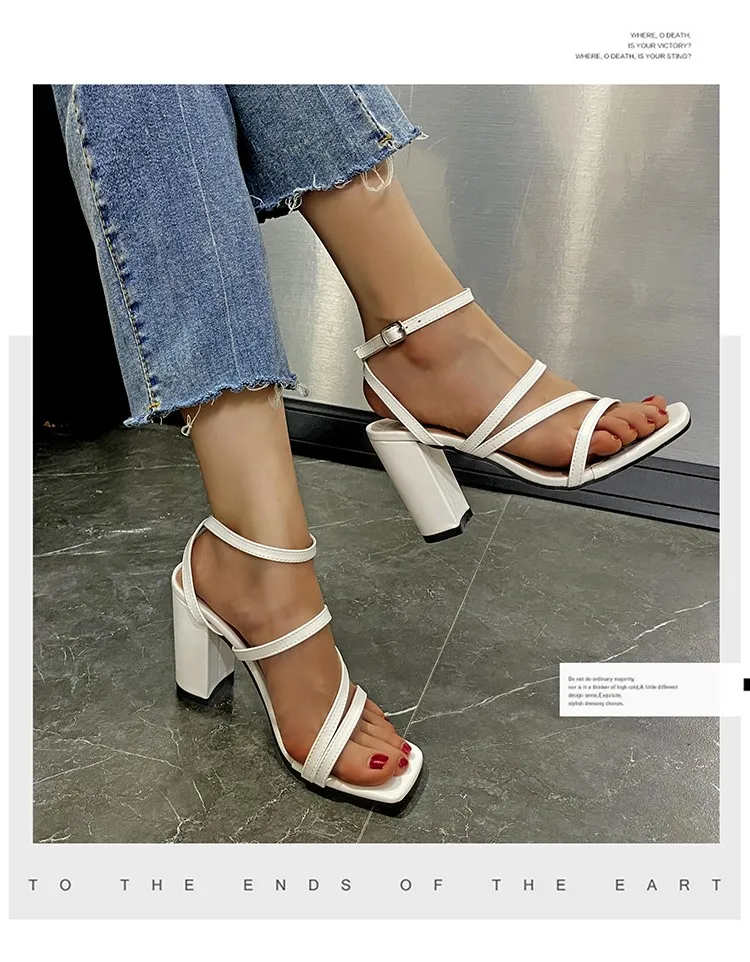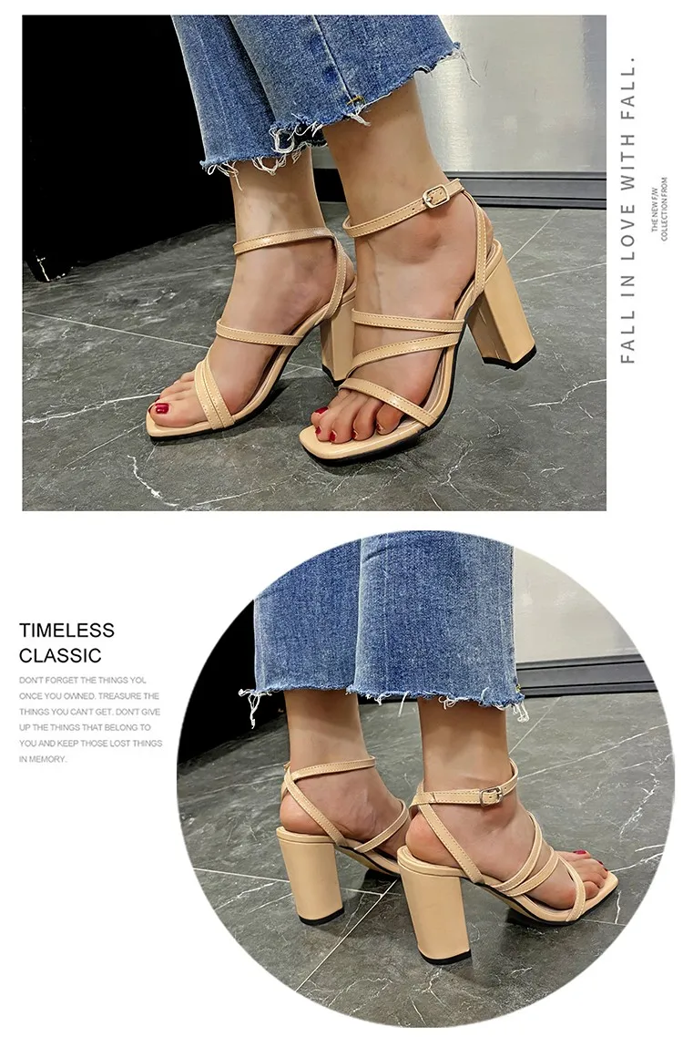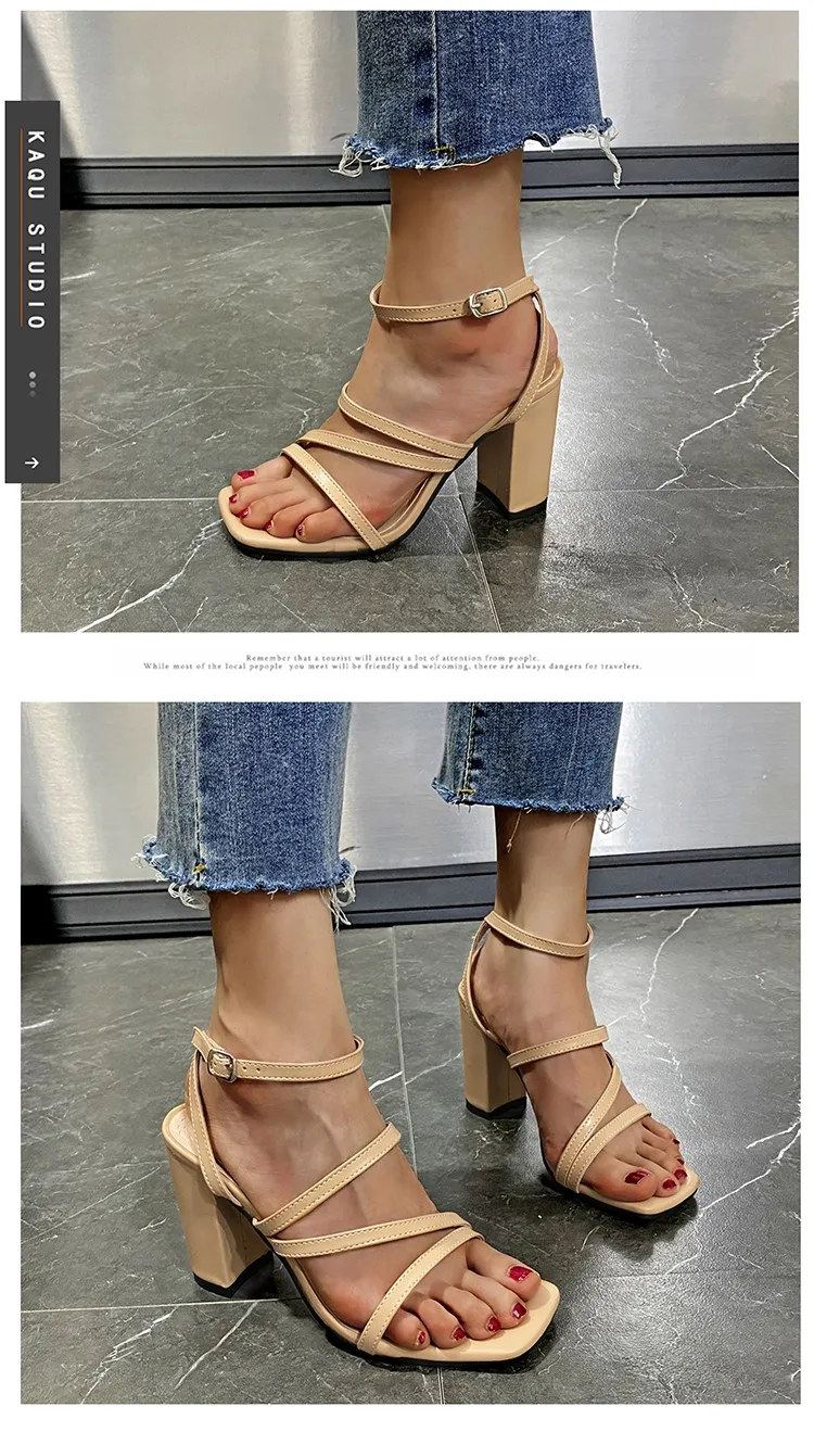 Сандалии женские на высоком квадратном каблуке, Элегантные Простые ...