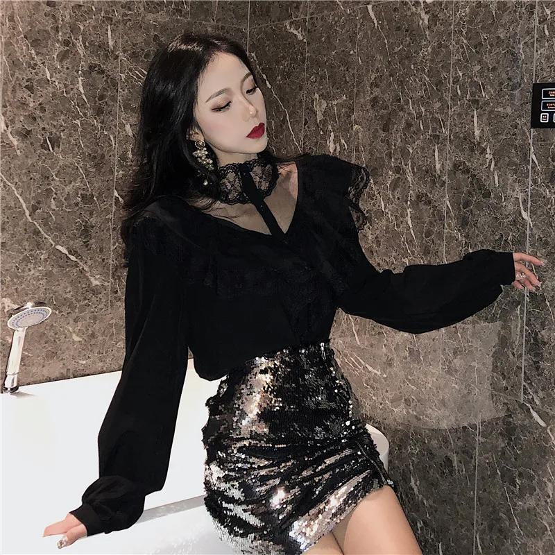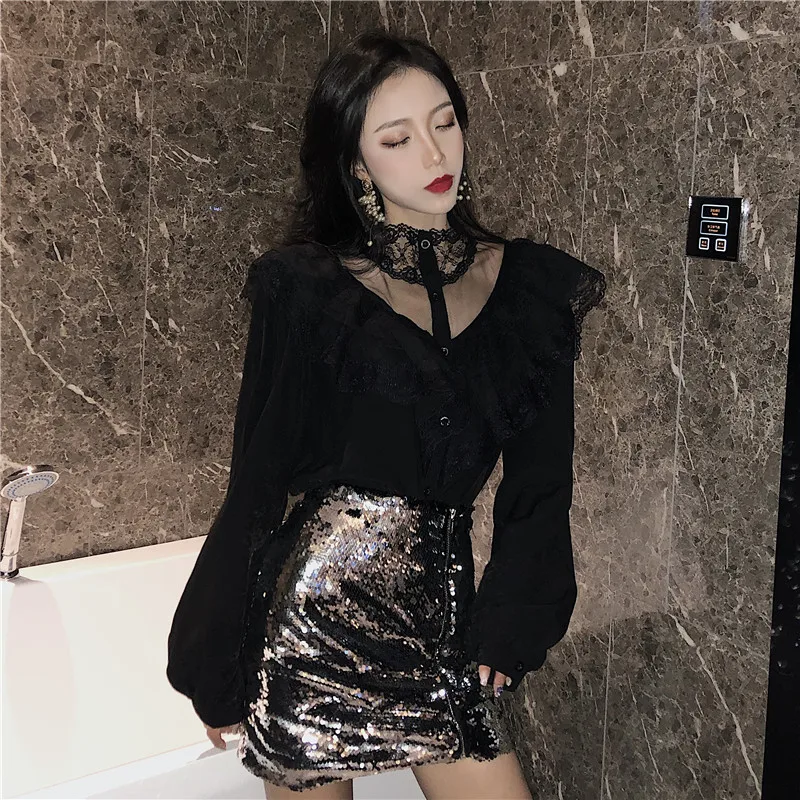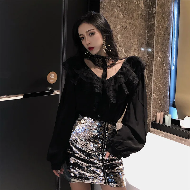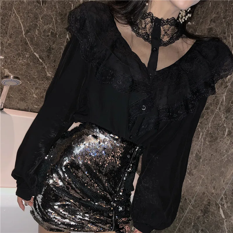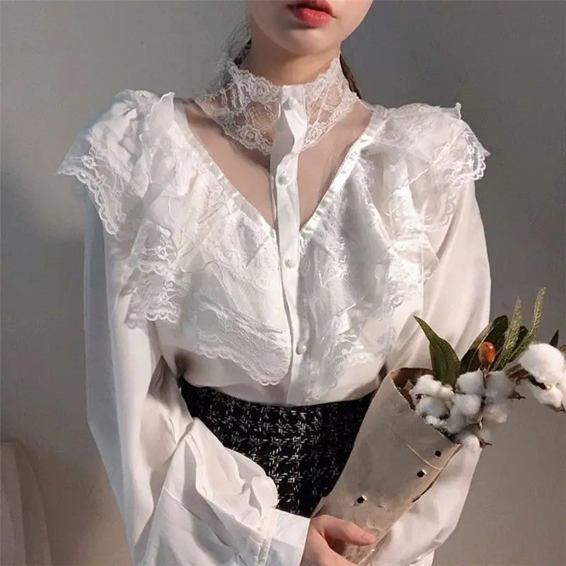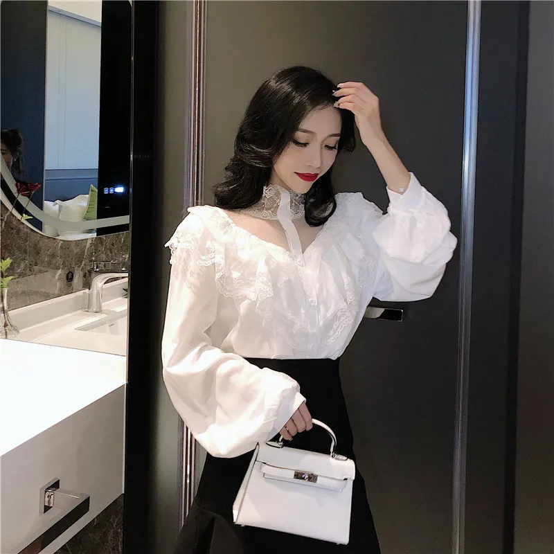 Женские Кружевные блузы с рукавами-фонариками и воротником-стойкой, универсальные весенние элегантные шикарные белые топы в стиле пэчворк, модные рубашки Hstar