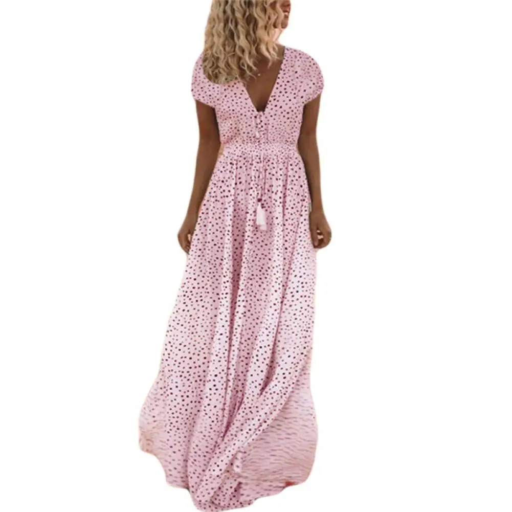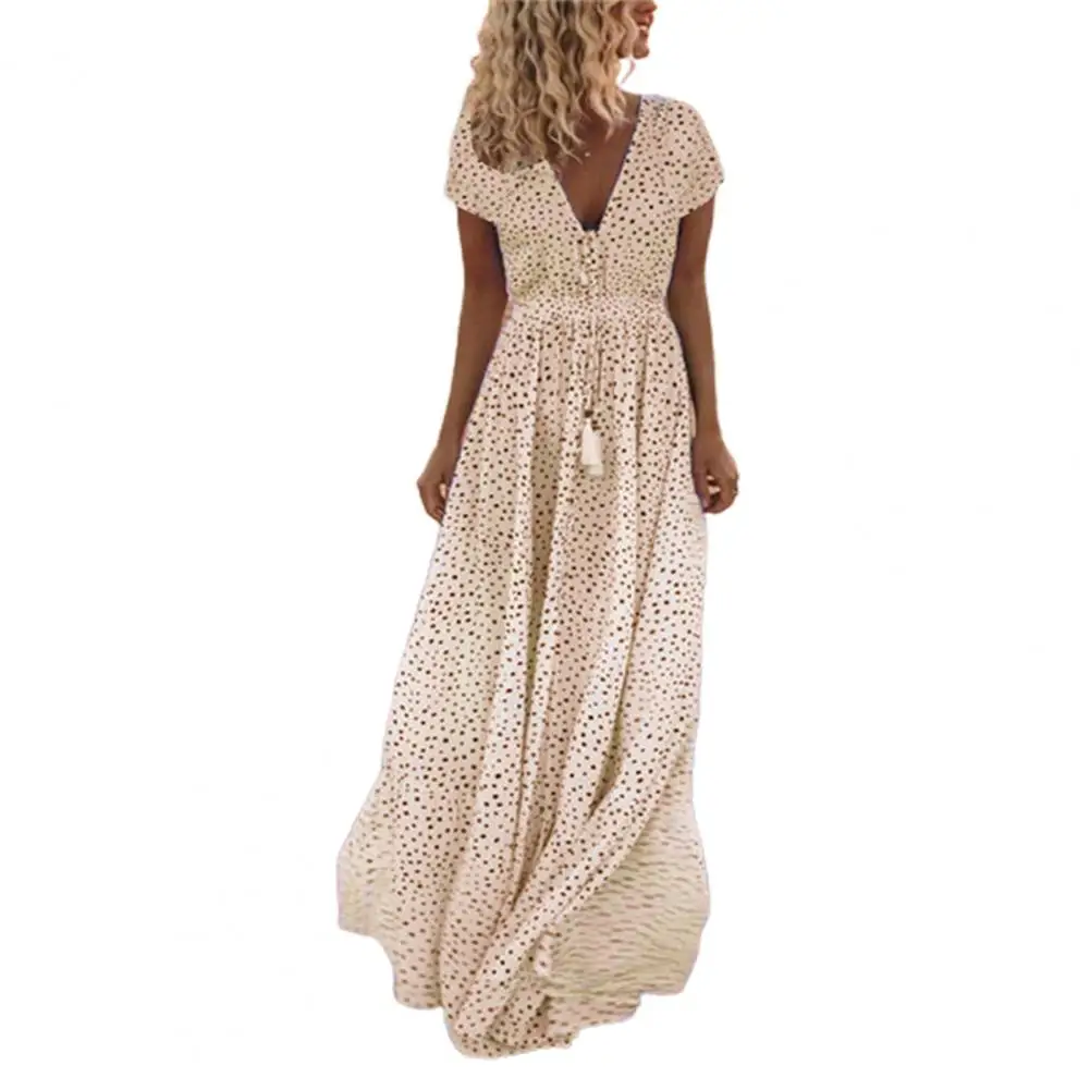 Лидер продаж 80%, длинное платье в горошек, универсальное летнее платье макси с коротким рукавом и V-образным вырезом для вечерние