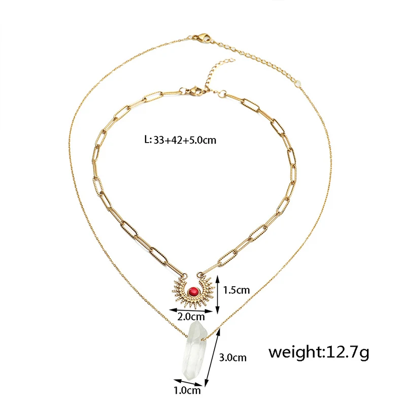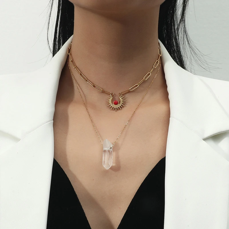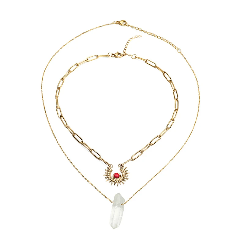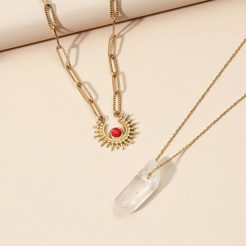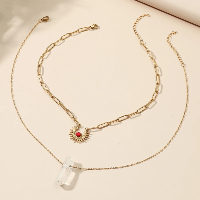 Ожерелье-чокер женское многослойное из нержавеющей стали с подвеской в виде солнца