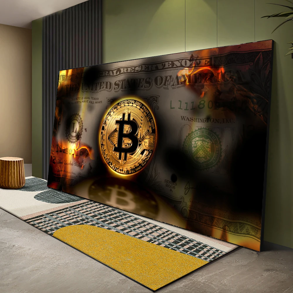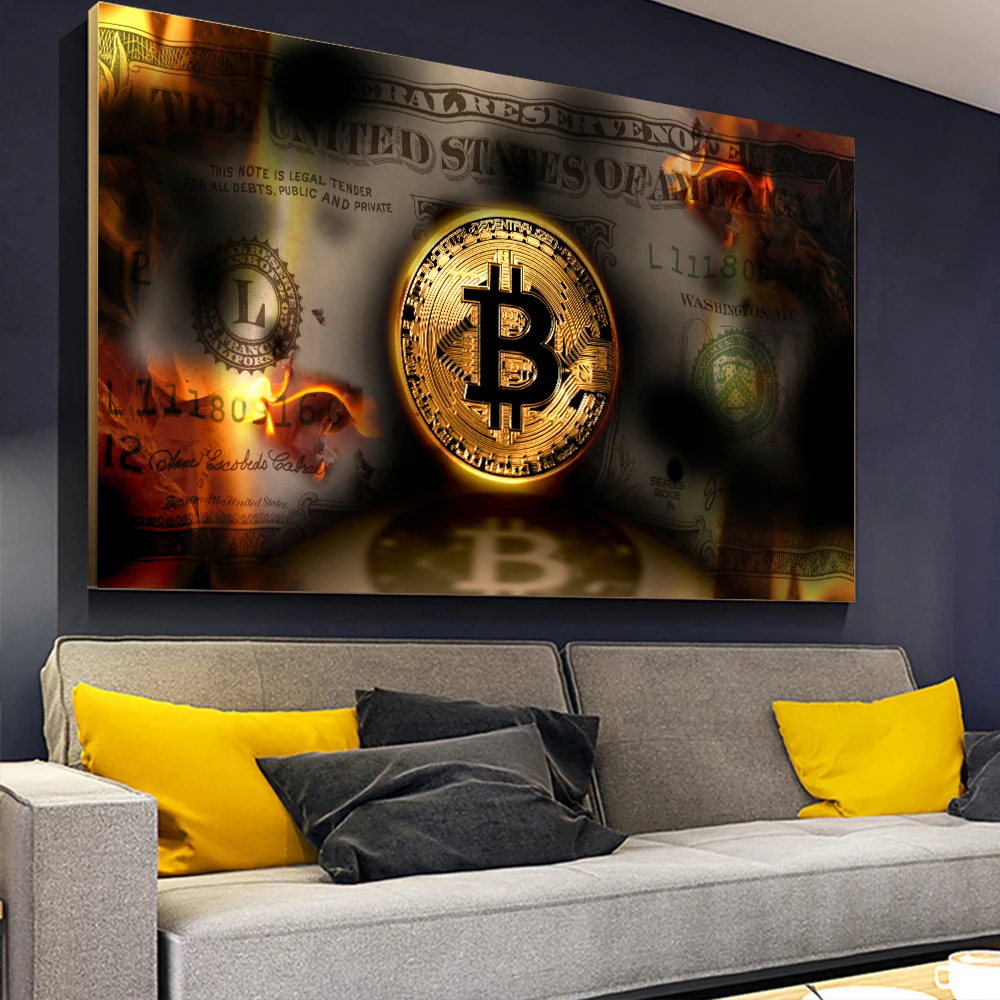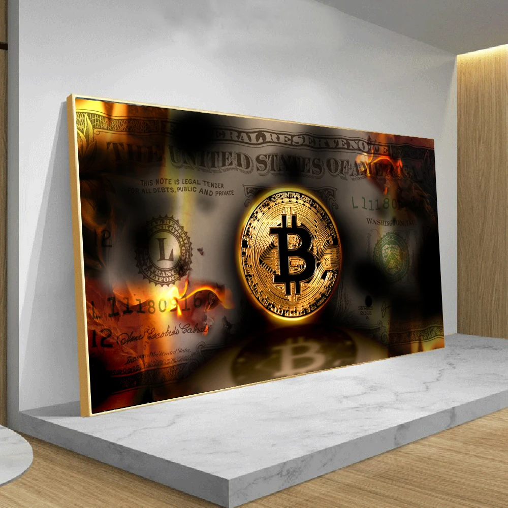 Абстрактная картина Биткоин, холст с изображением живописи, современный плакат с монетами, для спальни, гостиной, домашний декор